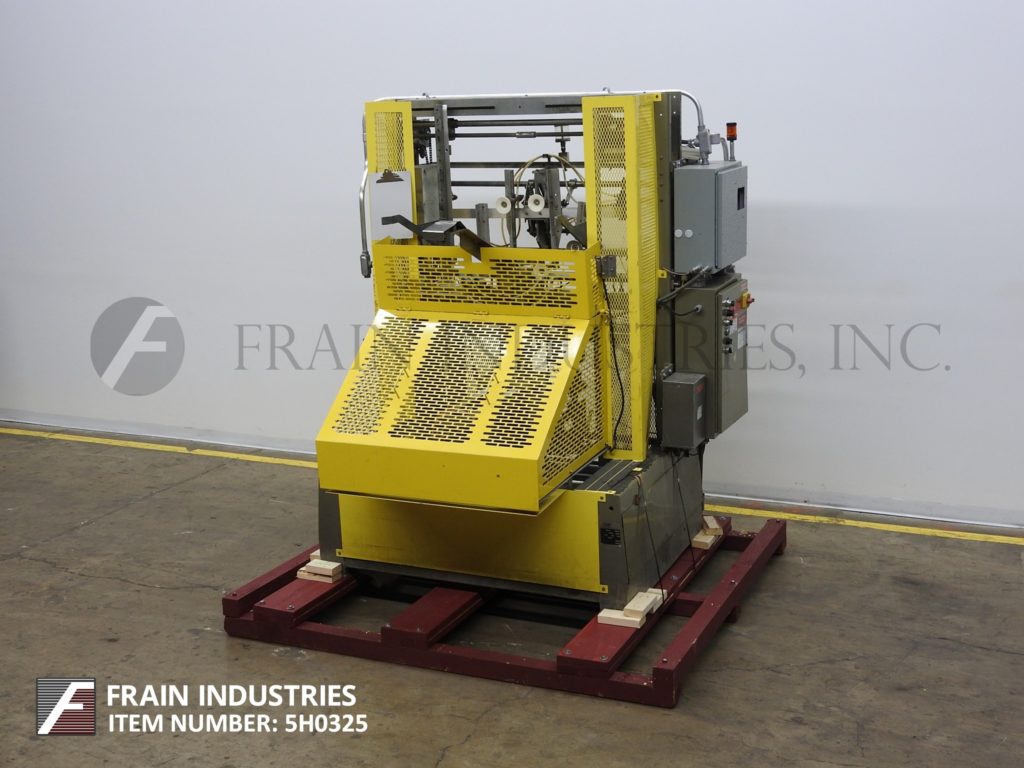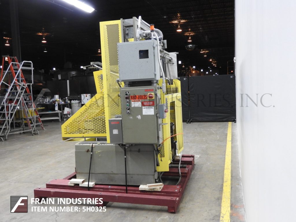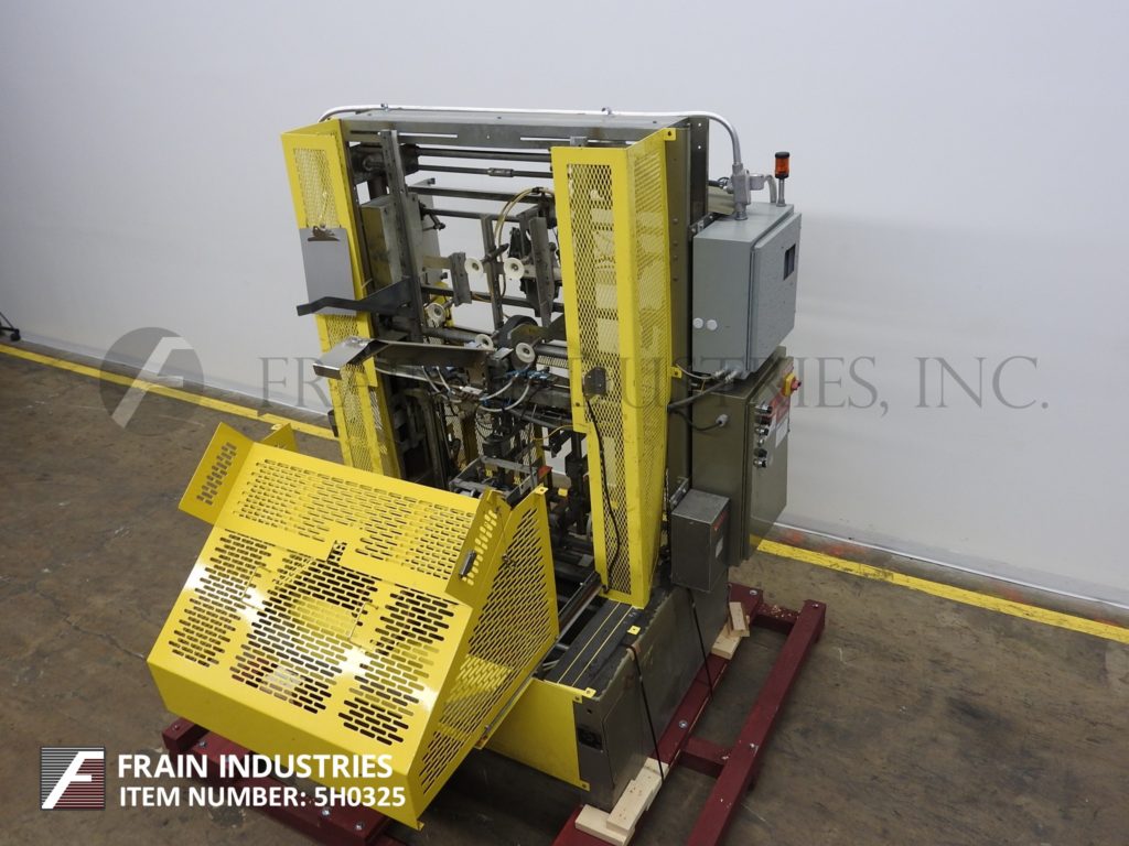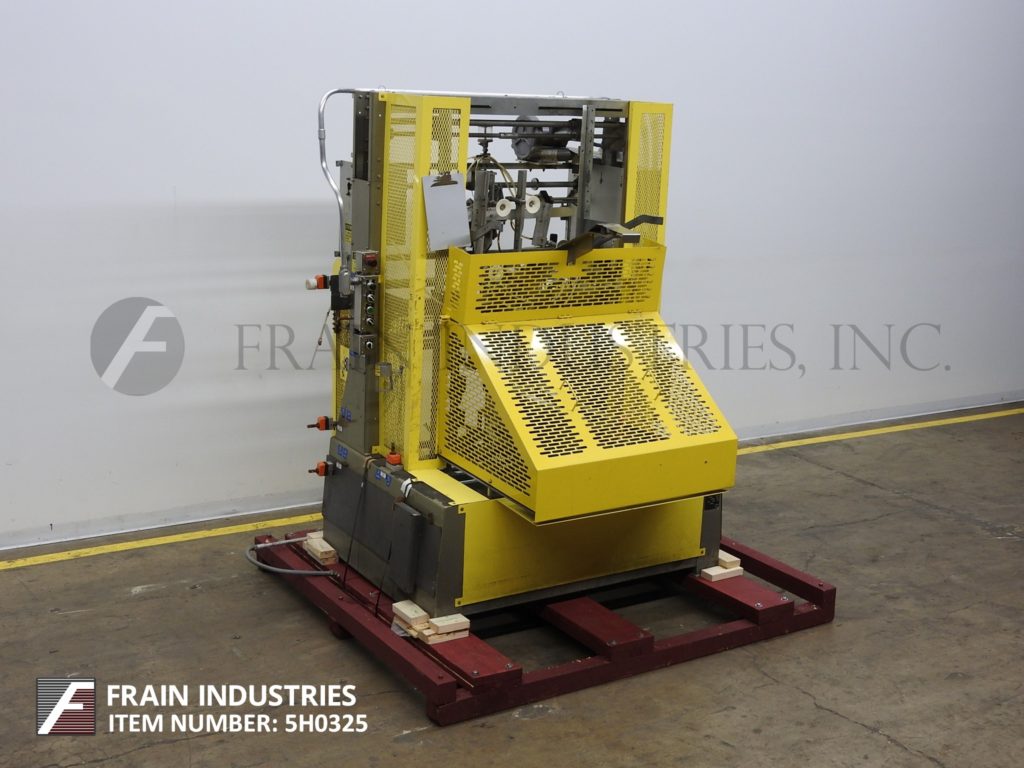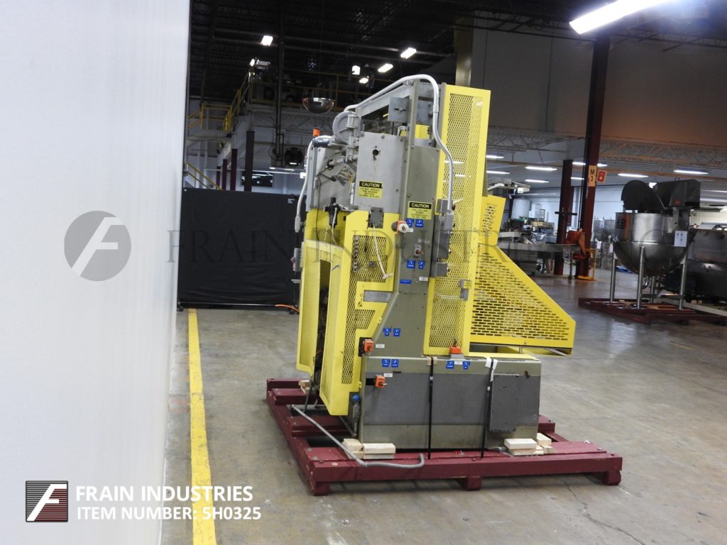 返回所有设备SWF, TF600VK型,全自动,成型机,热胶封口机。额定10至35托盘每分钟-取决于材料,应用和机器配置。托盘尺寸范围:11¾“至36”长度;宽度9"至23";深度2到10英寸。配有毛坯盘杂志、6杯真空取放、摩擦进料轮、SIKO量具、诺信热熔胶系统、集成真空泵。带有运行/慢跑,前进/关闭/逆转和真空开关的控制面板。按钮启动/停止按钮和笼式安全保护。安装在重型基础框架。