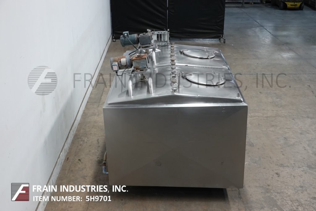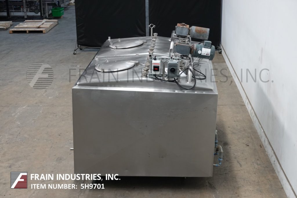 回到所有设备两个腔,304不锈钢,夹套和绝缘1000加仑风味罐。每个房间500加仑,内部尺寸为48“x 62”x 40”深。配备升降盖,18英寸手动通道,支柱搅拌由1Hp驱动和热井驱动。斜底部有2½”外径/ 2”ID三夹侧底部放电与12”地板间隙。安装在不锈钢腿上。矩形结构在小的建筑面积内提供了最大的容量。