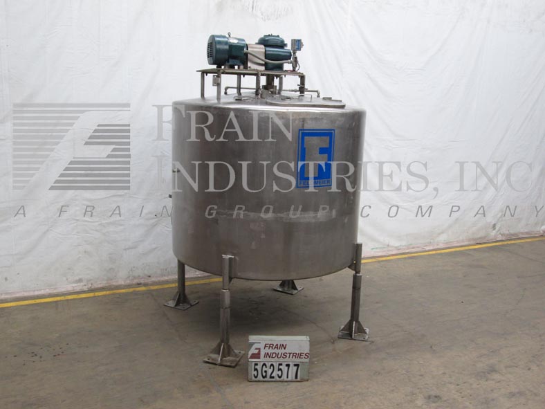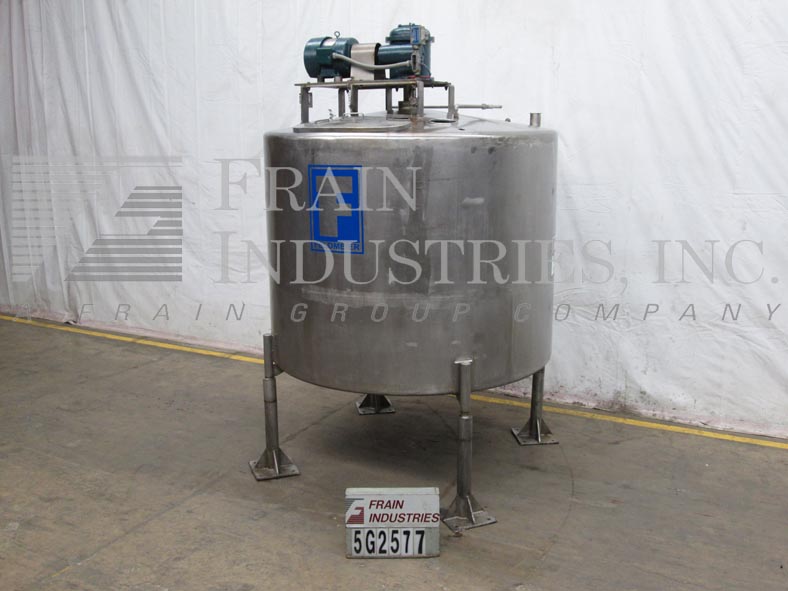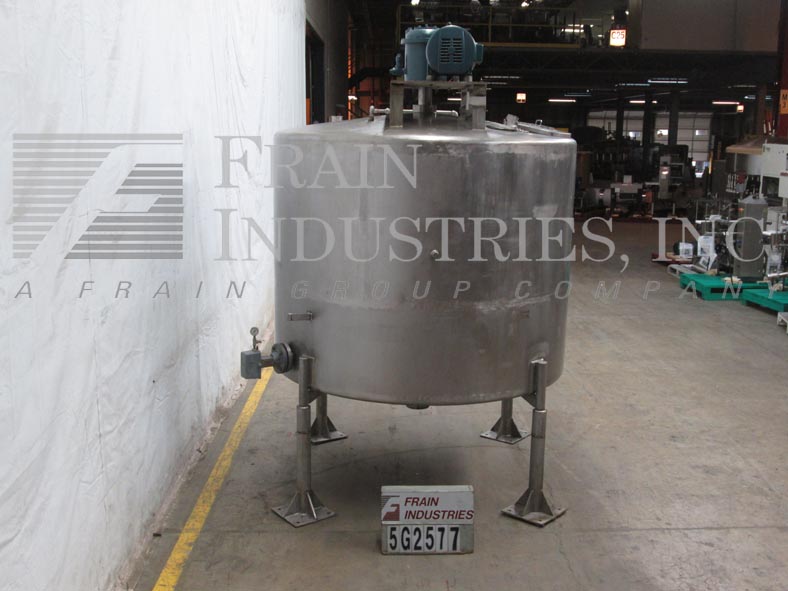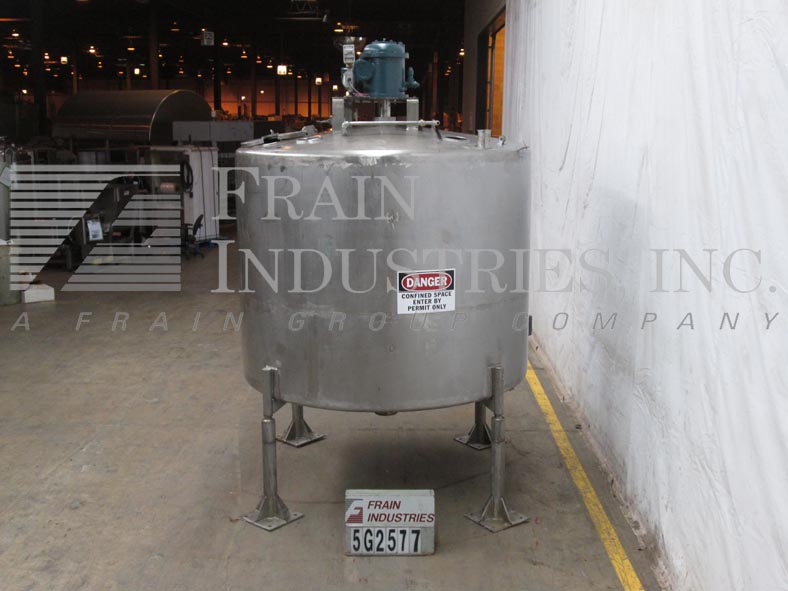 返回所有设备费尔德梅尔,1200加仑,304不锈钢单壁水箱。容器尺寸:直径80英寸,直壁60英寸。圆顶顶部配备了一个由3hp驱动器驱动的12桨式搅拌器,30" x 16"椭圆形人路,(3)6"内径通风口,(2)¾"螺纹端口和(1)3½"外径/2¾"内径三卡箍接头。侧壁包含一个¾”螺纹端口和一个压力表。碟形底部有一个¾”螺纹排泄塞和6½”外径/5½”ID三卡箍中心底部排泄,18”地面间隙。安装在四个不锈钢支架上。