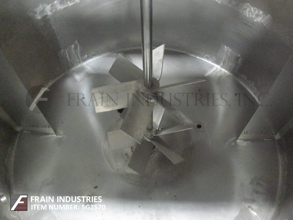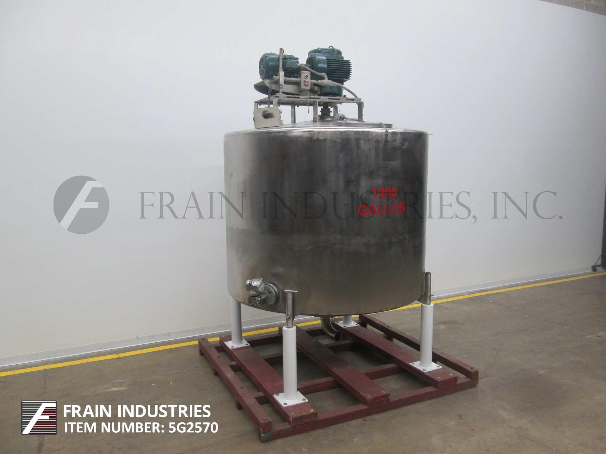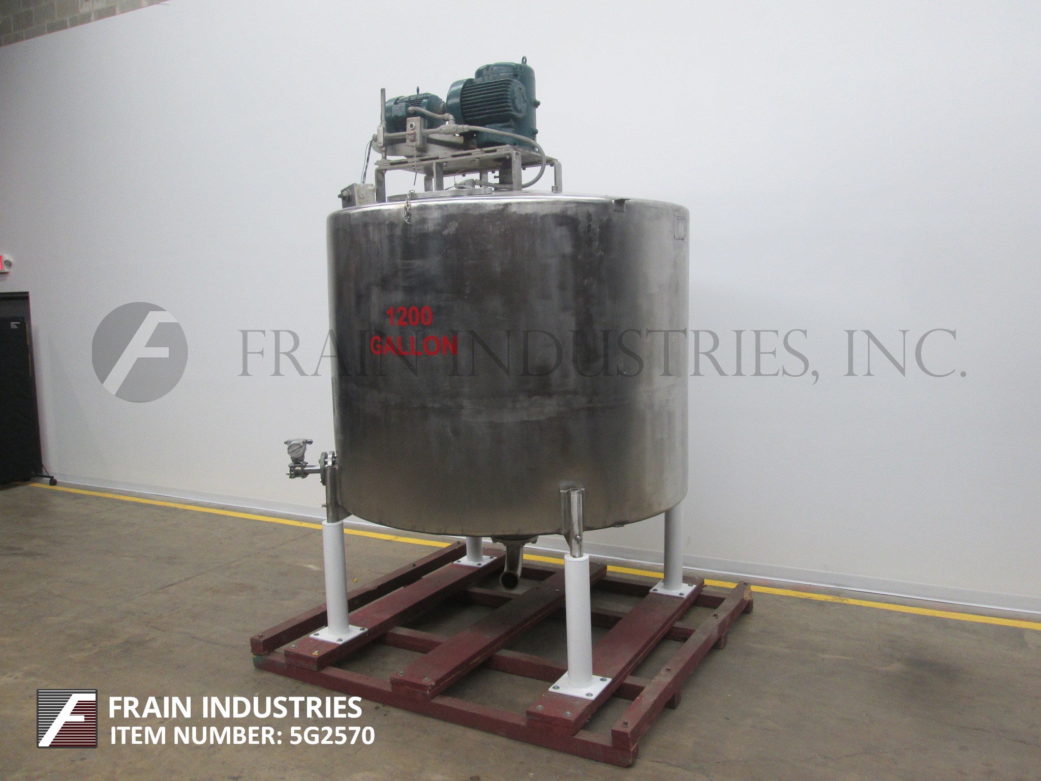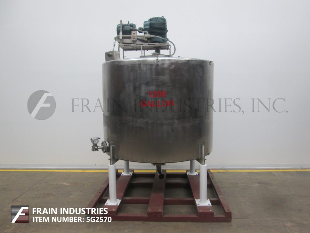 返回所有设备兰森坎普,1200加仑,304不锈钢单壁罐。78"直径x 62"直壁。配备单运动双六桨支柱式搅拌器,安装在罐体中央上方。容器有一个圆顶顶部,带有(1)19英寸直径人孔,(2)6英寸内径通风口和(2)1英寸螺纹CIP附件。碟形底部有(1)3¾”ID/4½OD三卡箍式接头,与8”地面间隙。安装在(4)不锈钢支腿上。