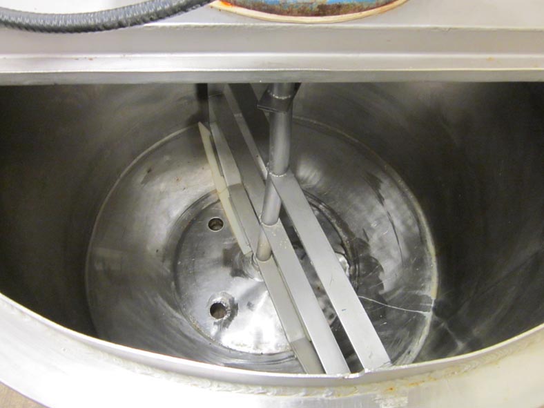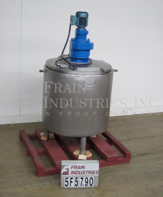 返回所有设备Eibir Inc,160加仑,304不锈钢,低压15 psi夹套混合容器。尺寸:36“ID; 38”直墙。配备双重翻盖盖,桥式侧面和底部刮刮表面搅拌,(3)2-1 / 2“卫生顶部端口,全侧和底部低压夹套,(2)侧和(2)底1-1 /2“ID螺纹夹克进出口和出口,盘底,2-1 / 2”OD Sanitay Center底部放电,12“楼层清除。安装在(3)不锈钢腿上。