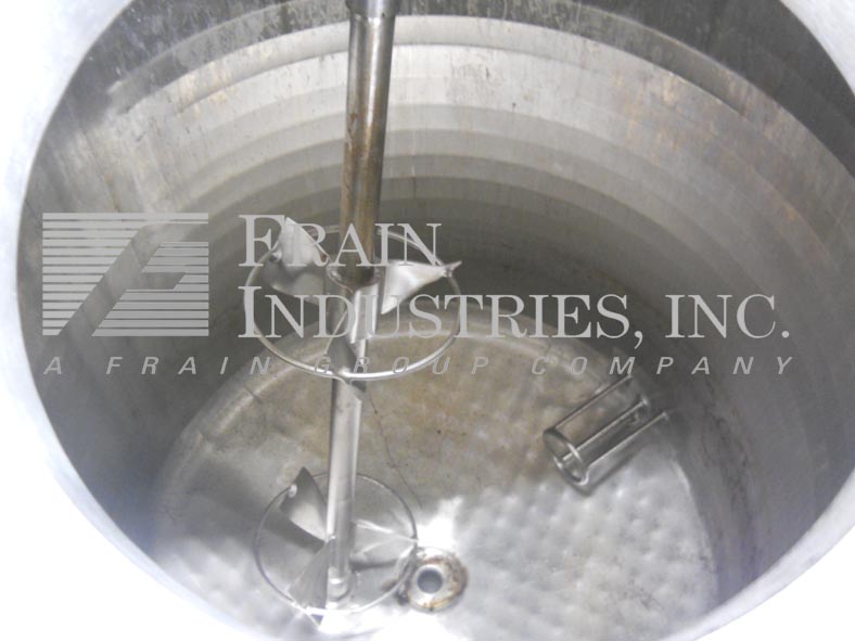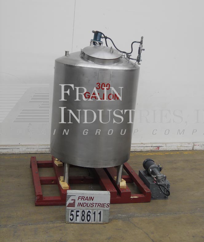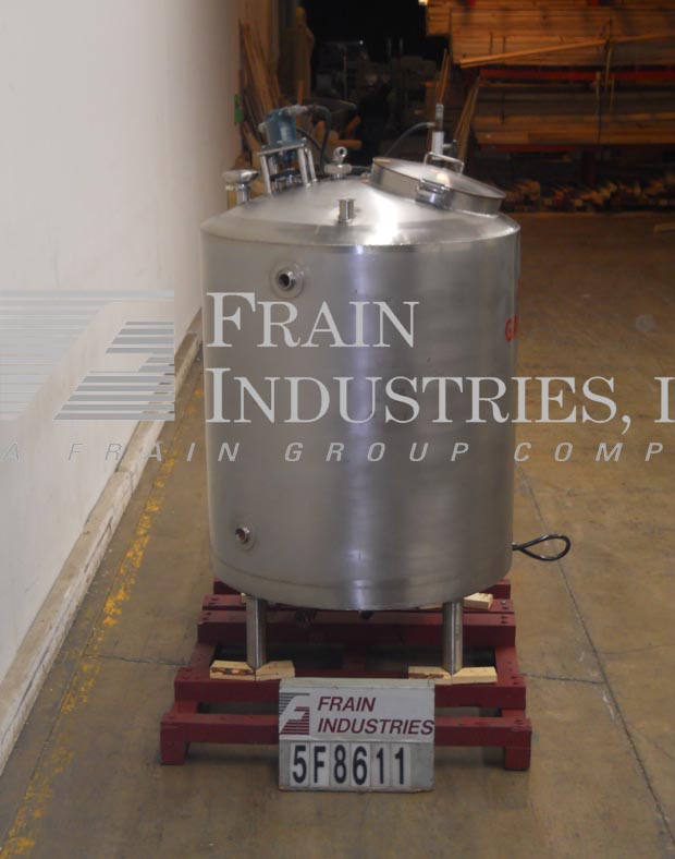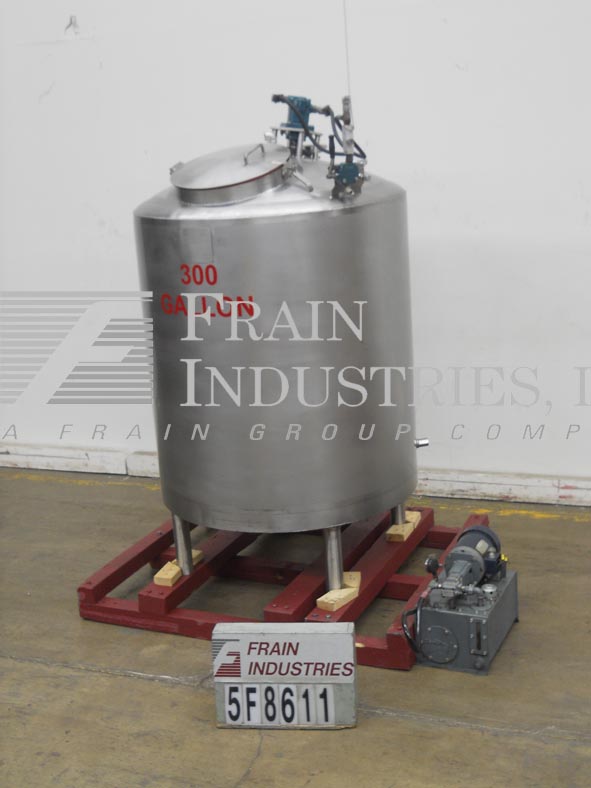 返回所有设备步行者300加仑,316不锈钢,全套夹套混合罐。48“OD X 50”直墙,圆顶顶部,有16“ID Man Way与翻盖顶部螺栓盖板,顶部安装道具款式搅拌机(3)2-1 / 2”OD和(1)3“OD卫生顶级港口。Full side and bottom jacket with vessel rating of atmospheric @ 250 Deg F and jacket rating of 100 psi @ 250 Deg F. with (1) 2" OD side, (1) 2" OD bottom jacket in/outlets. Dish bottom with 2-1/2" OD threaded center bottom discharge with 12" floor clearance and mounted on (4) stainless steel legs.
