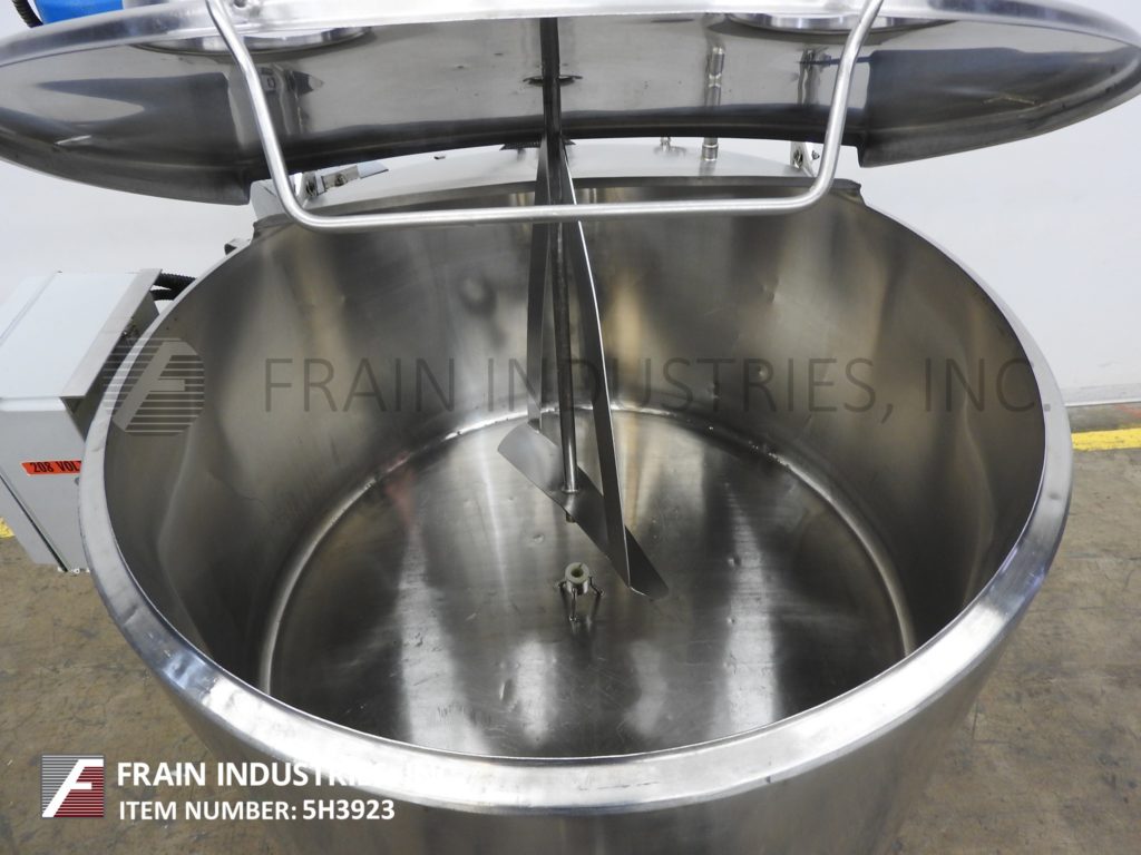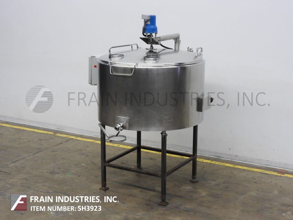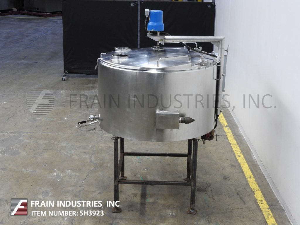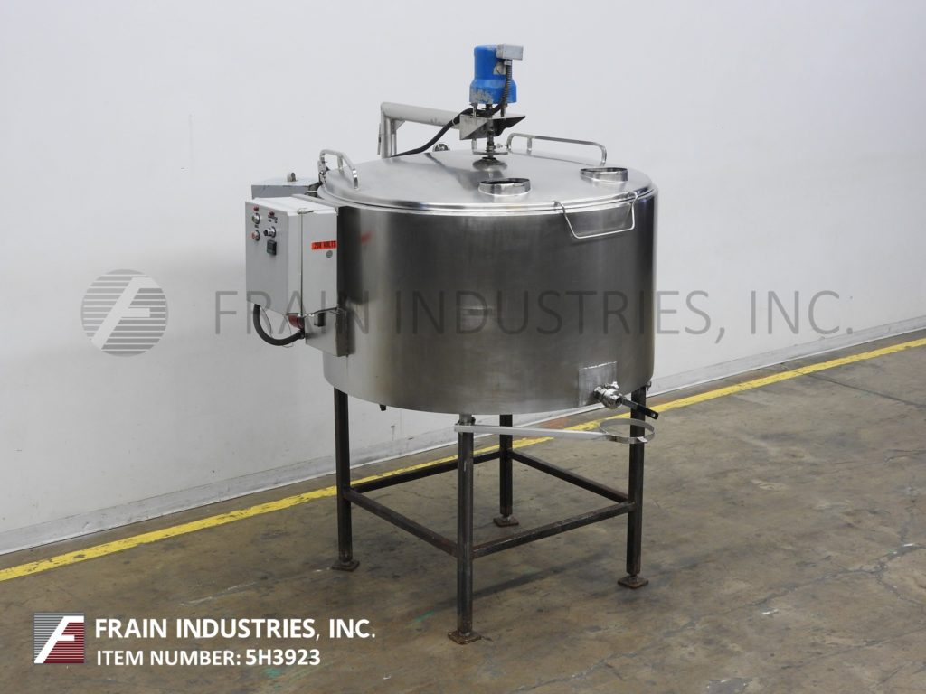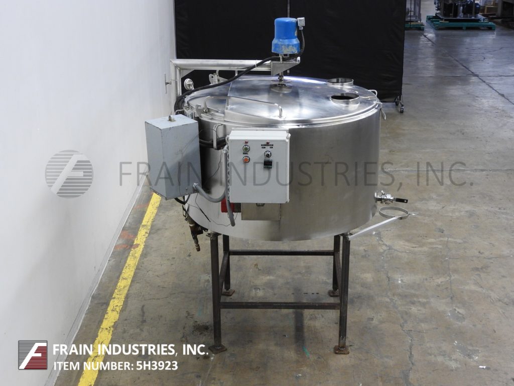 300加仑,低压15 psi夹套混合罐。容器尺寸:直径55";30“直墙。配备翻转式顶盖,中心安装清扫搅拌,2"外径/ 1½"ID三夹式侧底排放38"地板间隙和自备侧安装的热水器循环系统与6Kw浸入式加热器。