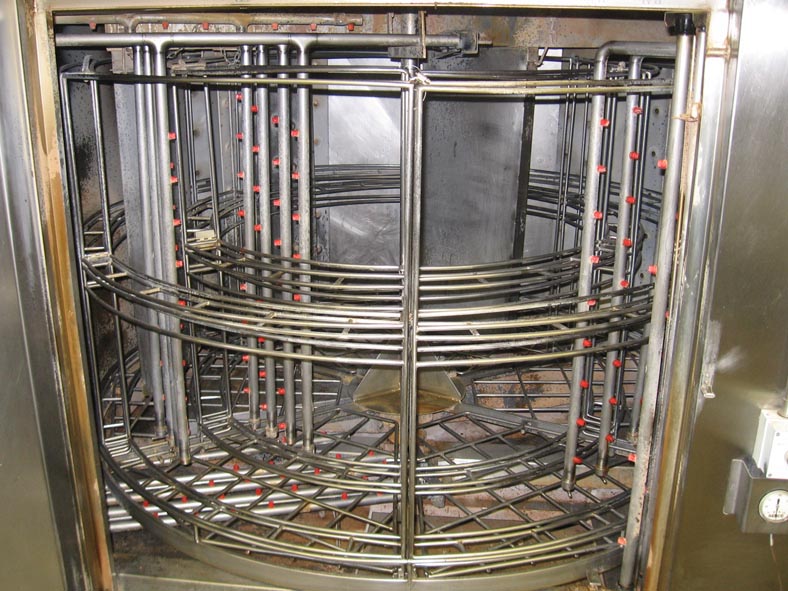 返回所有设备Newsmith,模型泡沫,自动,不锈钢,旋转垫圈,能够洗涤最多42个烘烤盘,每小时托盘 - 取决于材料和应用。72“直径X 42”高洗涤室额定高达60加仑的水和每小时250磅的蒸汽消耗。配备双洗涤剂分配器,7-1 / 2 HP洗涤泵,直径蒸汽加热和托盘架,甚至是直径的平坦喷嘴1/8“直径轴管,轴管,底部,前两侧。托盘用淡水冲洗和不锈钢建筑烘干机和风扇。控制面板已启动和停止,清洗,冲洗和干燥器与单个定时器。安装在不锈钢框架上。能够用适当的变化部件洗涤烤盘,薄托盘和各种尺寸的其他平板。