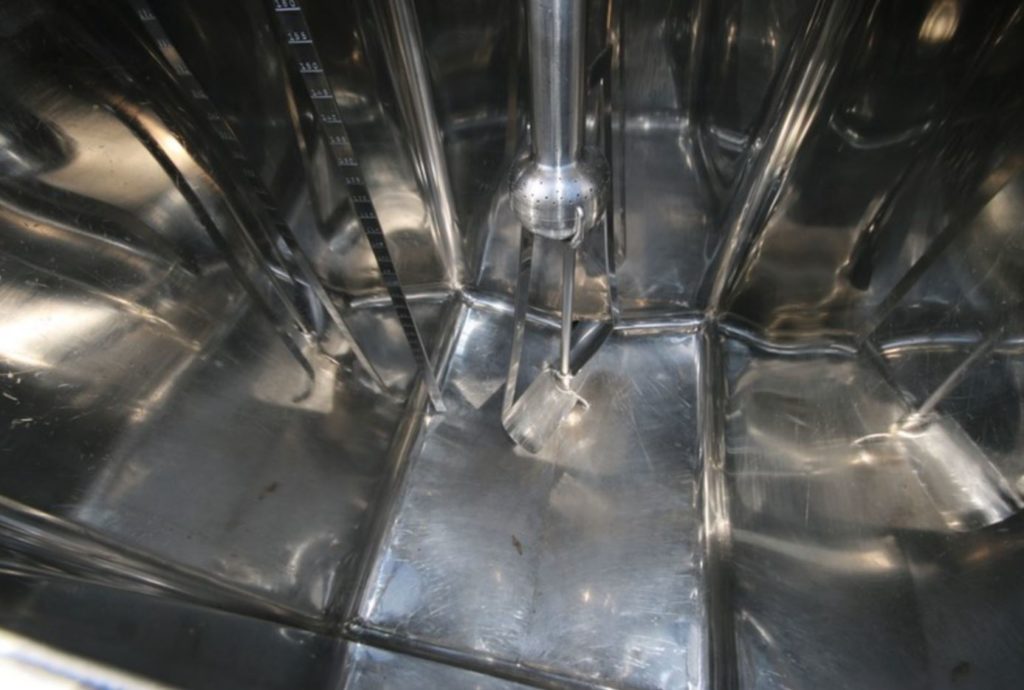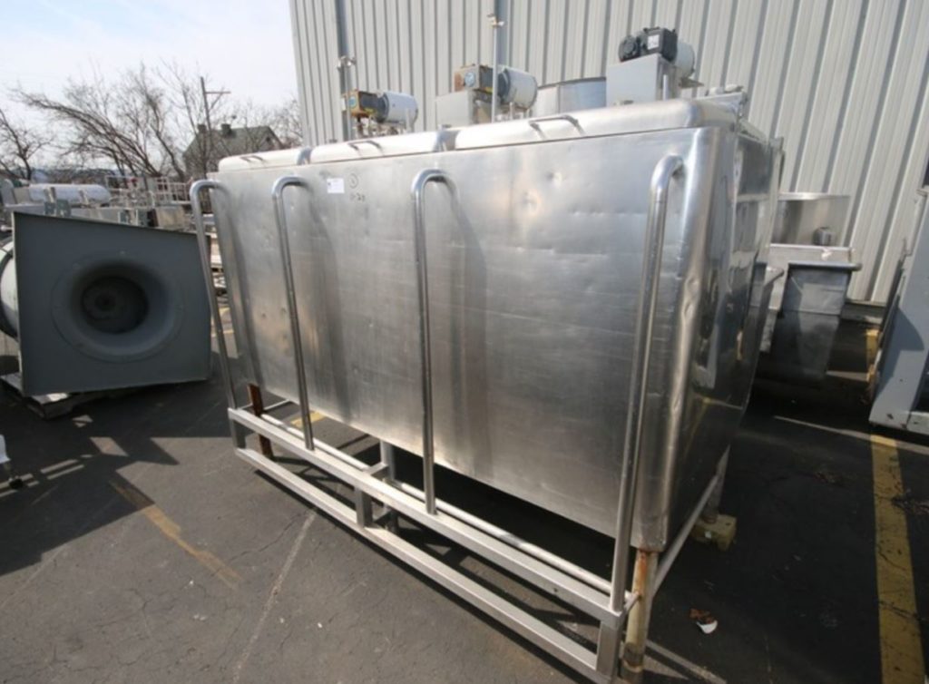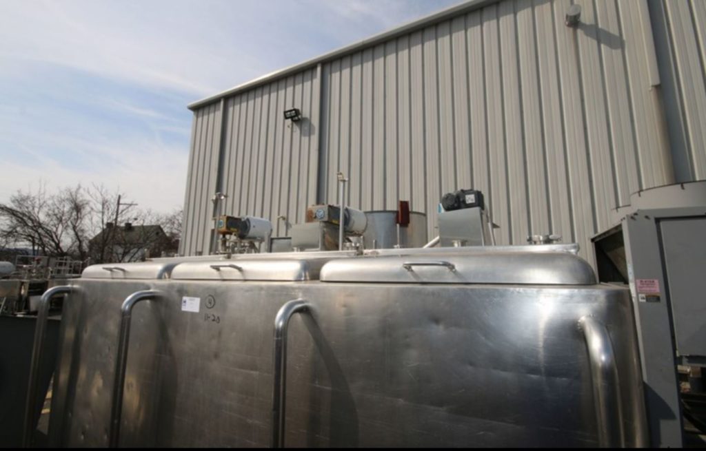返回所有设备三腔,304不锈钢绝缘,500加仑味道。每个腔室为170加仑,内部尺寸为36“x 28”x 40“深。配备升降盖,支柱搅拌,由½HP驱动器提供动力,由2½”OD / 2“ID Tri-Clamp提供的½HP驱动器和CIP喷射球。配件。倾斜底部有2个“OD /1½”ID Tri-Clamp侧底部放电,22“落地间隙。安装在不锈钢腿上。