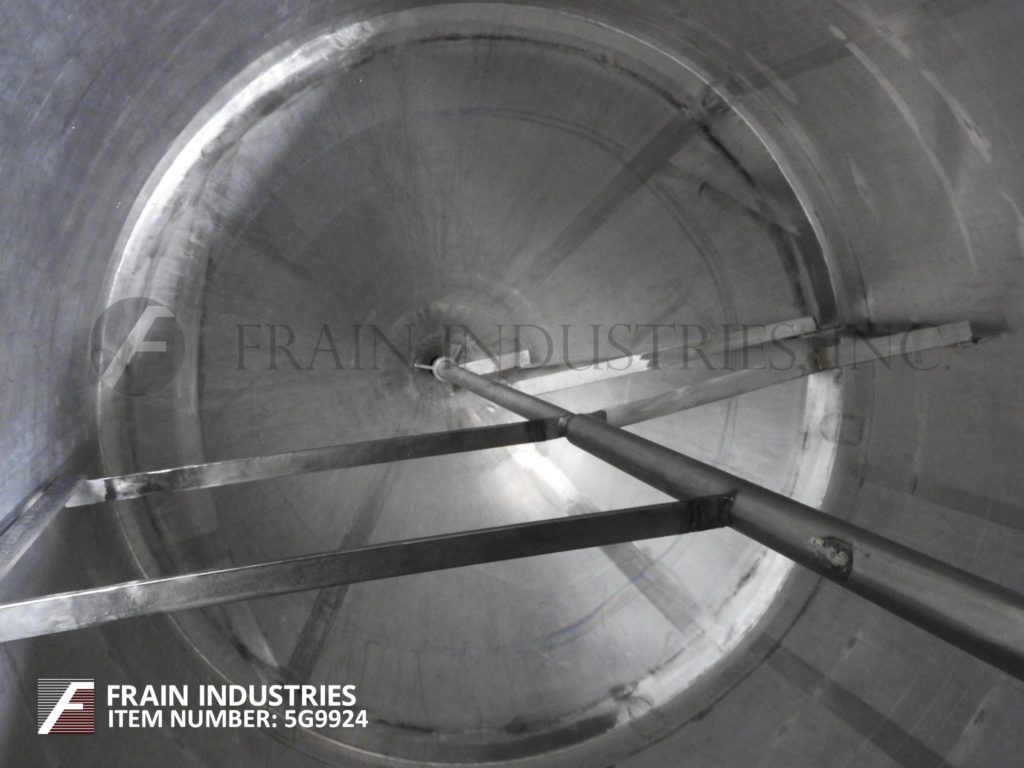 返回所有设备2,500加仑容量,304不锈钢绝缘低压夹套工艺罐。容器尺寸:84"直径x 140"深84"直壁。配备圆顶顶20" x 20"铰链人方式,5马力顶部安装扫搅拌。锥形底部和2½”外径/ 2”ID三卡箍式底部放电,带夹套弯头和15”离地间隙。安装在(6)腿上。