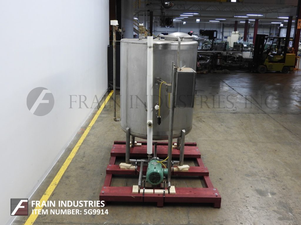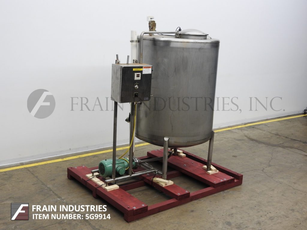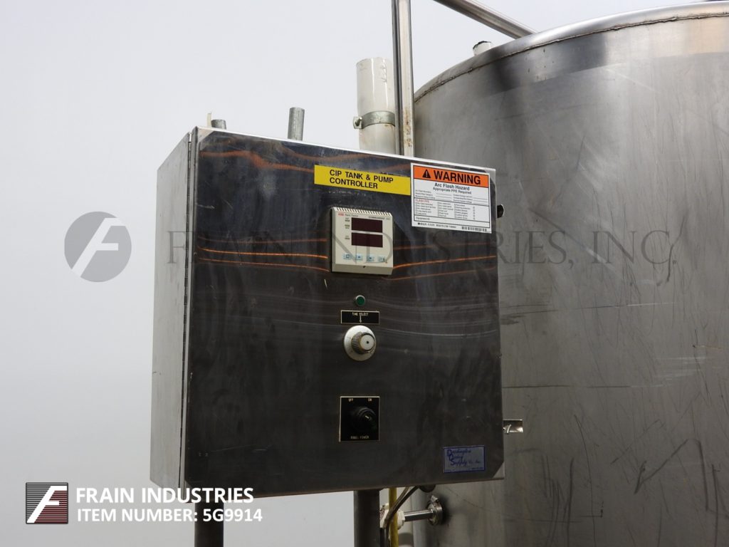 返回所有设备达灵顿乳品供应,700加仑,304不锈钢单壁罐。容器尺寸:55"外径x 72"直壁。配备平顶,19"人的方式与翻转盖和水平传感器。碟底排放到一个Tri-Clover,型号C216 MD21T-S,由7.5马力驱动的离心泵。带有开/关开关的控制面板,触摸板控制器和计时器拨号。安装在不锈钢底座上。