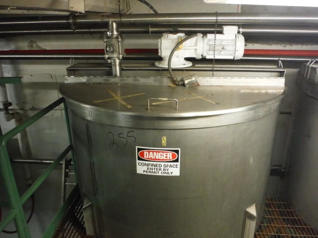 返回所有设备1400加仑容量,316不锈钢单壁罐。船舶尺寸:66“直径x 96”深,锥形底部深。配备翻转盖板,5 HP顶部安装的30“直径四桨型搅拌器。安装在(4)腿上安装有3个半”OD / 3“ID Tri-Clamp风格的底部放电,___”接地间隙。