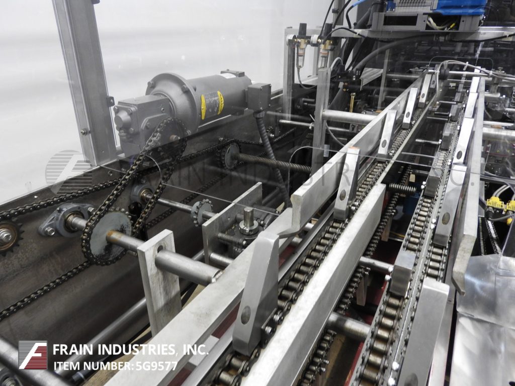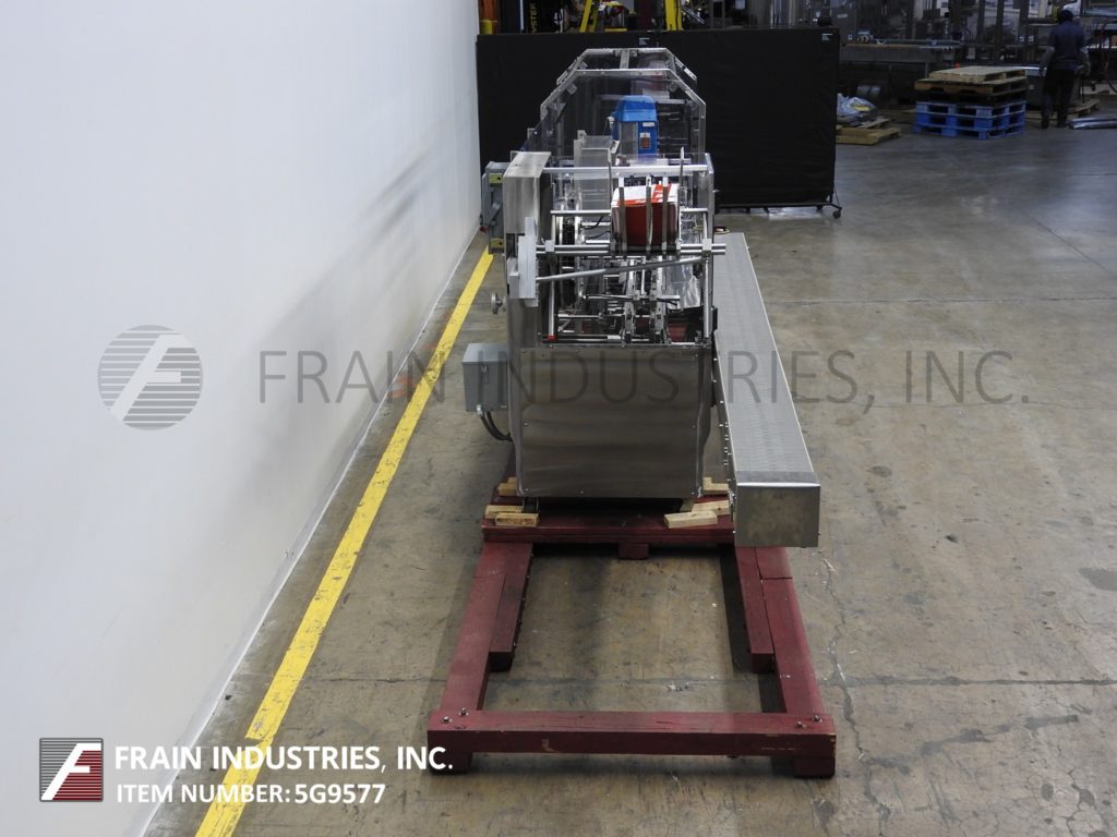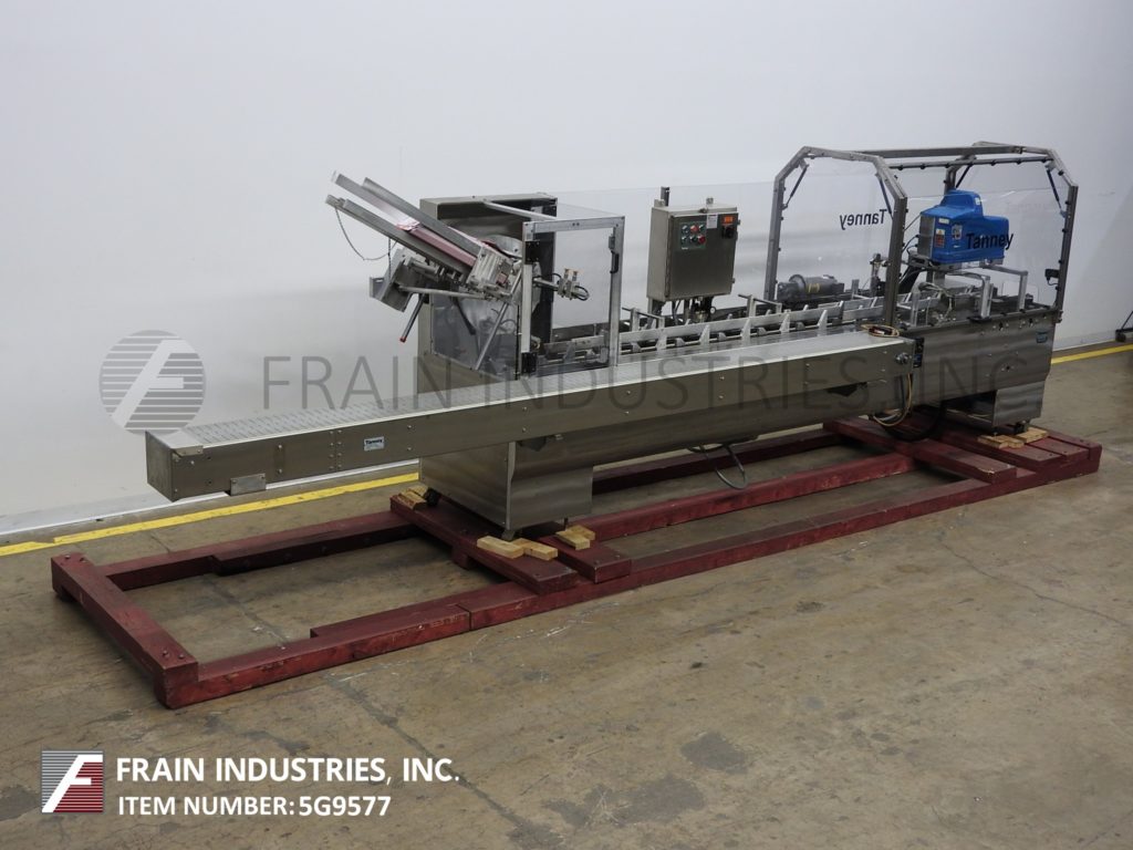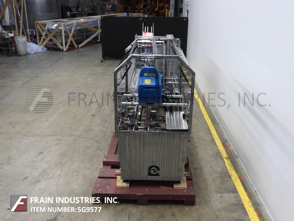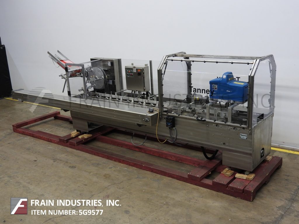 返回所有设备Tanney,Model 901-150,半自动,水平,连续运动,不锈钢,热熔胶胶凝箱。每分钟22到150纸盒 - 取决于材料,应用,机器配置和操作员灵活性。纸箱尺寸范围:1“至9”的长度;宽度为1“至4½”;4½“到14”深度。配备(3)链可调,设置在12英寸中心,宽x4¼“高凸耳,165”长产品在饲料输送机,72“长手装载区域,36英寸长的空白纸箱盒装(3)头旋转吸盘镐N场,纸箱方格装置,主要和小翼片犁和近距离,Nordson热熔密封系统和10“长压缩部分。连续操作或脚踏踏板指数。控制面板有按钮开始/停止,真空上/关闭开关,胶水开/关开关,运行/慢跑开关和变速。安装在带有脚轮的不锈钢基架上。