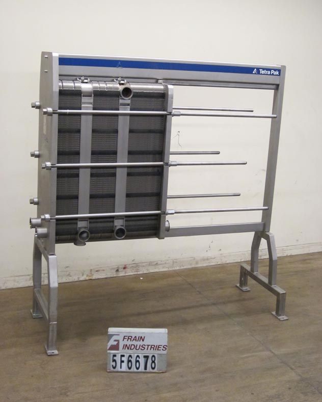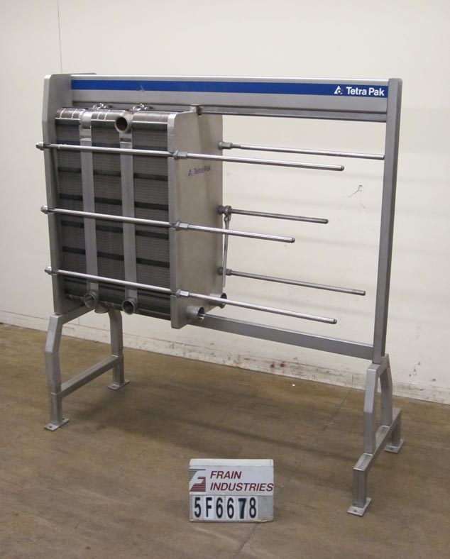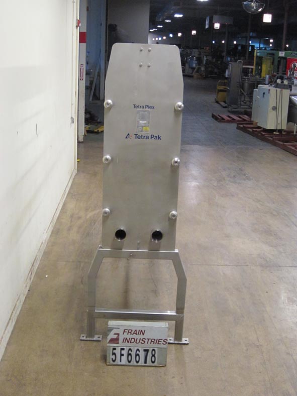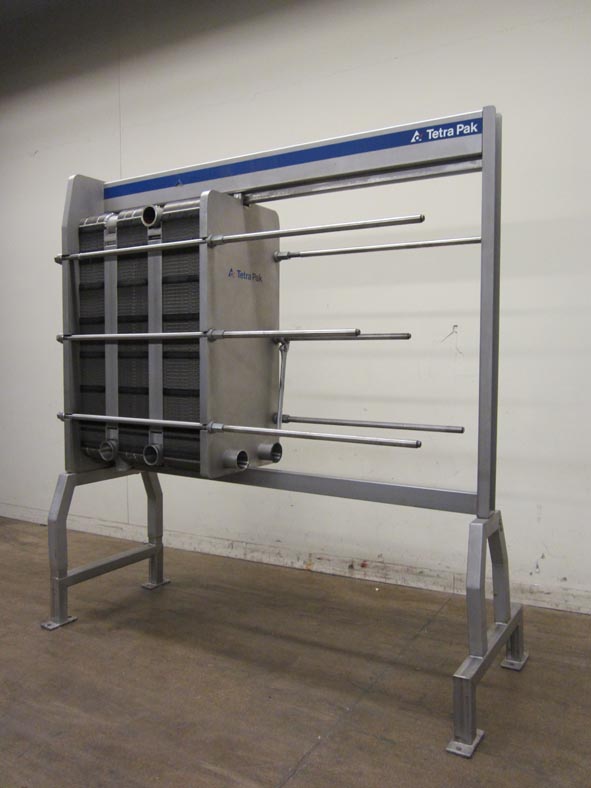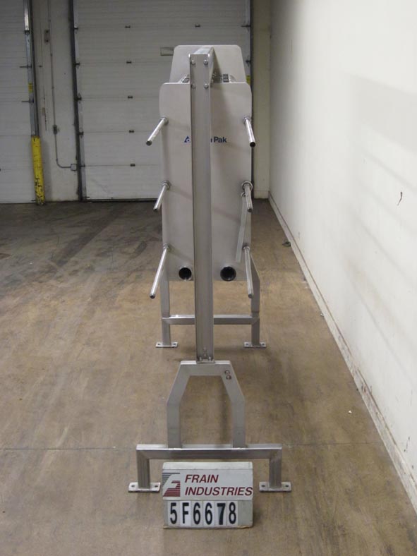 返回所有设备利乐包316不锈钢,板框式换热器1160英尺²传热面积。最大板容量:240块。目前配备了120个牌照。板尺寸:60"高x 20"宽;x 8毫米厚。每个板的可操作表面积:3.75英尺²。额定压力:高达150psi。额定温度:高达250°F。目前额定MWAP 145psi @ 230°F, MDMT -20 @145psi,所有3.75" Tri-Clover,卫生连接件,安装在所有不锈钢底座框架上。符合3A卫生标准