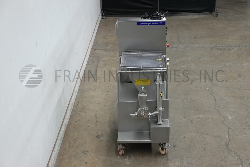 TetraPakHoyer模型FF2000C2自动不锈钢推送器每小时产品量-视材料应用而定17'x18'x14'深9加仑不锈钢成分回路控件板开关可变速度拨接混音器、auger和泵爬上不锈钢框与铸模