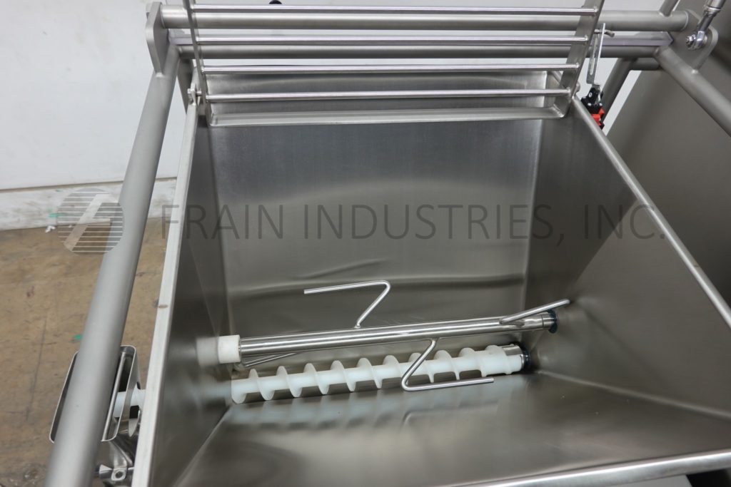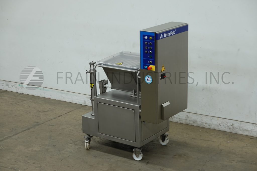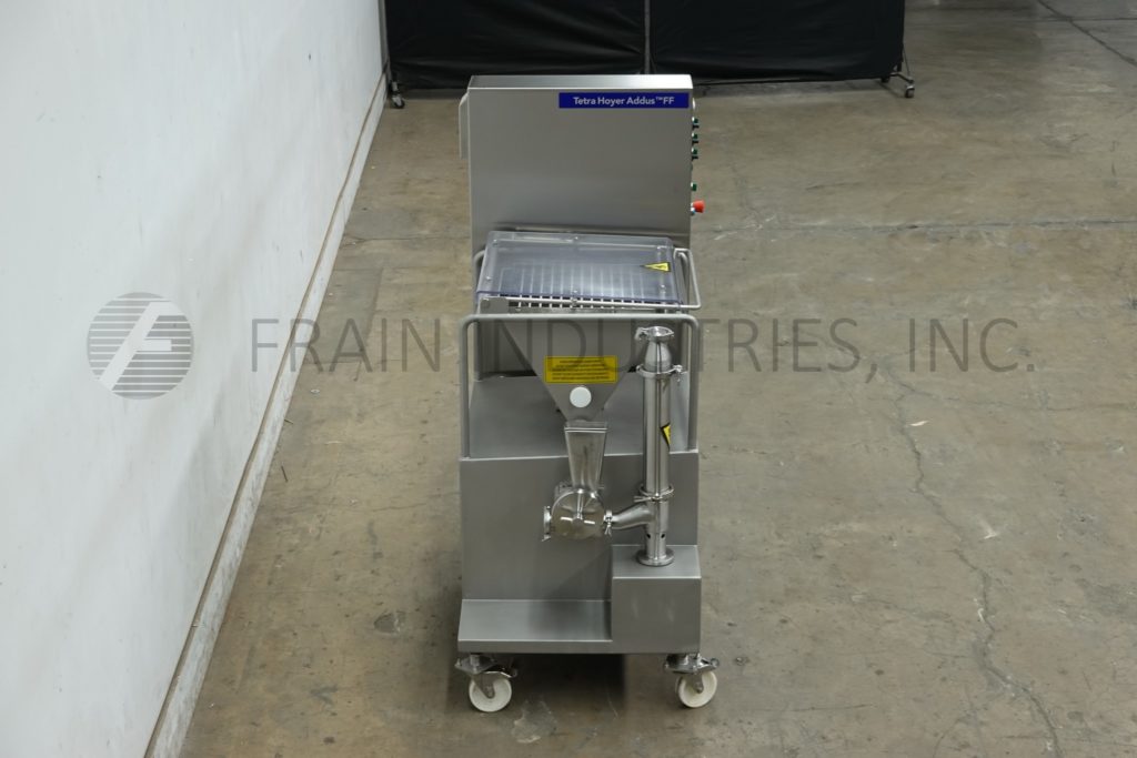 Back to All EquipmentTetra Pak Hoyer, Model FF2000 C2, Automatic, stainless steel, ingrident feeder with amount of product per hour – depending on materials and application. Equipped with 17" x 18" x 14" deep, 9 gallon, stainless steel ingredient hopper with agitator, safety grid and see thru flip up molded plastic cover with automatic shut-off. Control panel with on/off switches and variable speed dials for mixer, auger and pump. Mounted on stainless steel frame with caster.