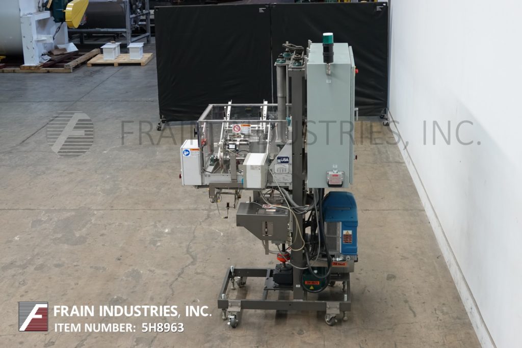 返回所有设备蒂勒,T7400A型,顶置馈线。额定从10到400挑每分钟-取决于材料,应用和机器配置。产品尺寸范围:1"至6"宽度;1“到6”的高度和1“厚与(4)头。配备60"长可调宽度优惠券杂志,(4)头旋转真空吸盘挑n位,条码读取器,诺信Problue热熔胶系统和真空泵。控制面板采用AB控制器,带有触摸屏人机界面和统计灯条。