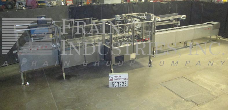 返回所有设备全自动连续运动水平箱式,电流从80到200纸盒/分钟 - 速度取决于材料和应用。机器是在6“中心的纸箱尺寸范围:(长度)1-1 / 2 - 5”(宽度)1/2“ - 3-3 / 4”(深度)3“ - 9”。有四头rotary carton feeder with 6’L powered carton magazine. AB PLC controls w/DL20 digital display. Has a 7’L fixed bucket infeed conveyor, Lincoln lubrication system, no product no carton, no carton no product sensors. Currently set up for straight tuck style cartoners. Lexan barrier guarding and s/s sanitary design. Emboss date coder and worm screw bottle loader available at additional cost per application.