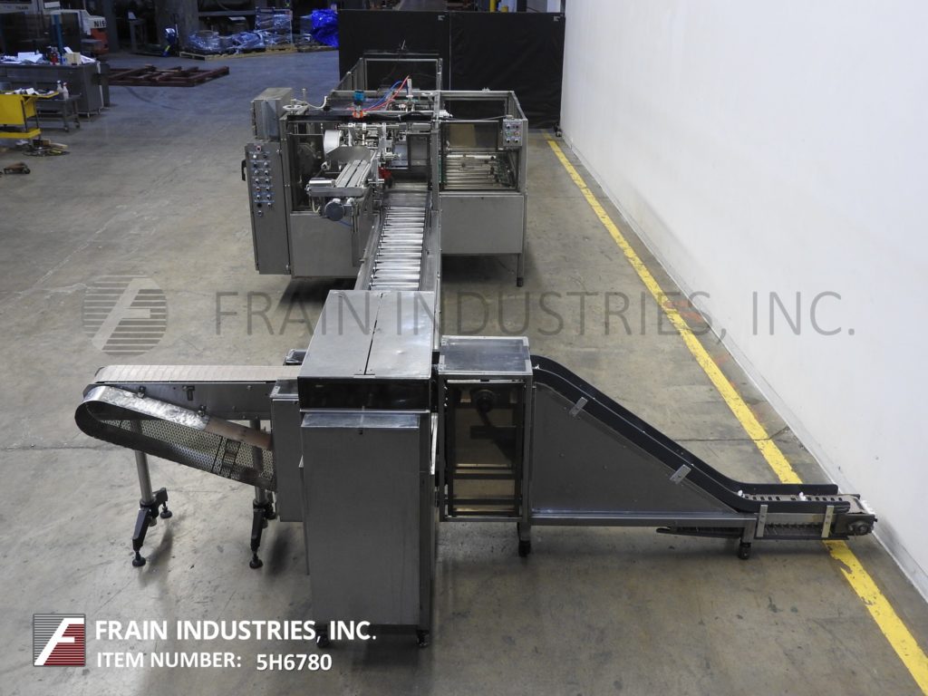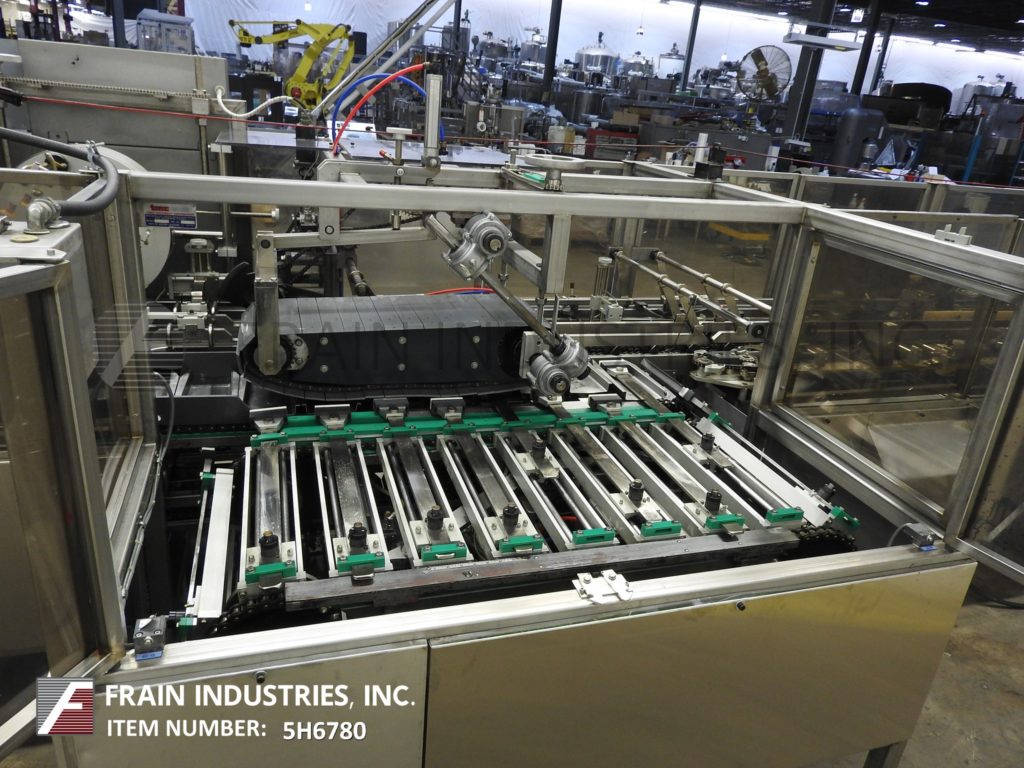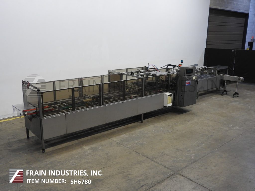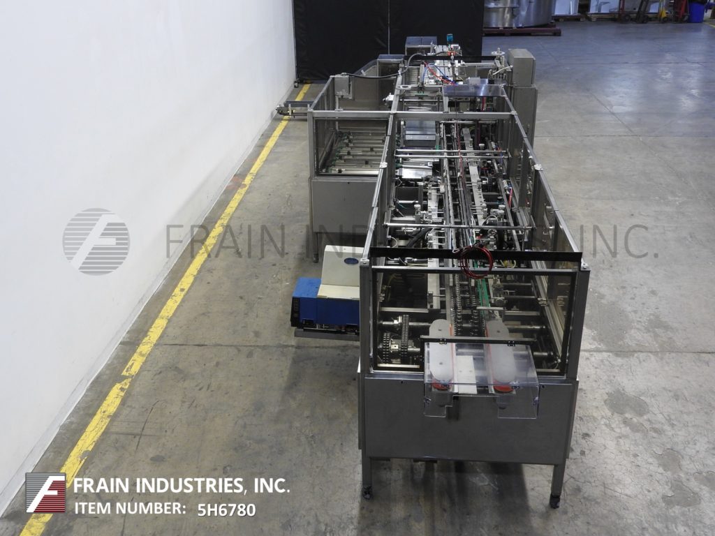 返回所有设备Tisma TCH 600L型,自动,连续运动,水平,热熔胶纸箱每分钟50至250箱-取决于材料和应用。纸箱尺寸范围:1-1/2"至5"长x 1/2"至3-3/4"宽x 3"至9"深。配备(4)链可调上设置6”中心,1 - 1/2“宽x 1 - 1/2“高凸耳、32”长x 4“宽产品进料输送机120”,95“长可用产品手负载斗进料输送机4-3/4”长x 1”宽x已经降至11”深桶固定产品。60“长链(2)自动空白纸箱杂志,(4)头旋转图片n,顶部按住平方栏,没有产品/纸箱和低空白传感器,自动桶凸轮产品装载机,诺信热熔胶系统,纸箱皮瓣意见和双重24”长x 1“高压侧带压缩/放电输送机。控制面板,具有CPU控制器和A/B面板视图,具有读数,周期启动/停止,推气缸开/关,慢跑/运行,产品按下/上/下开关和e-stop控制。安装在多腿重型框架与联锁安全门和统计灯。