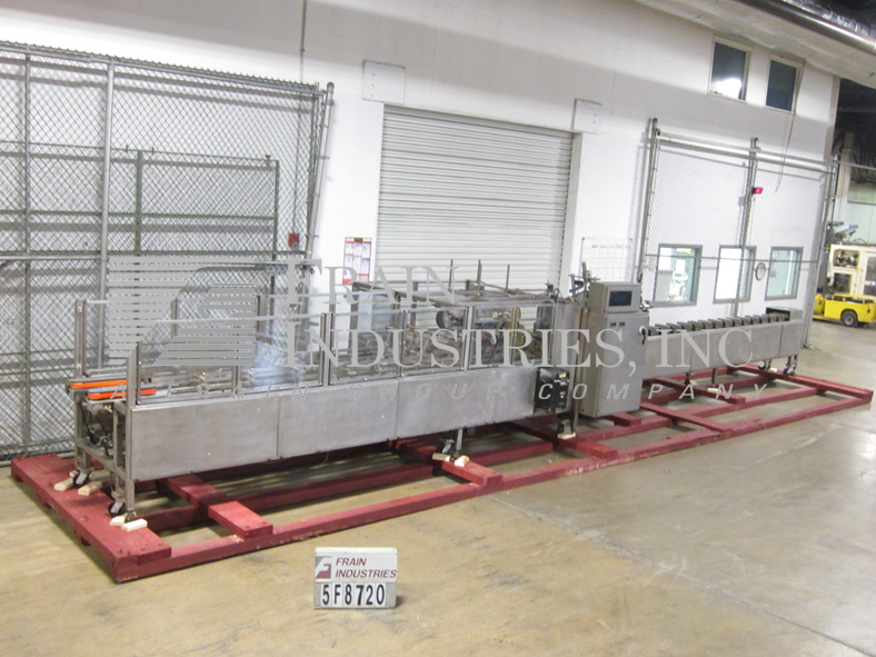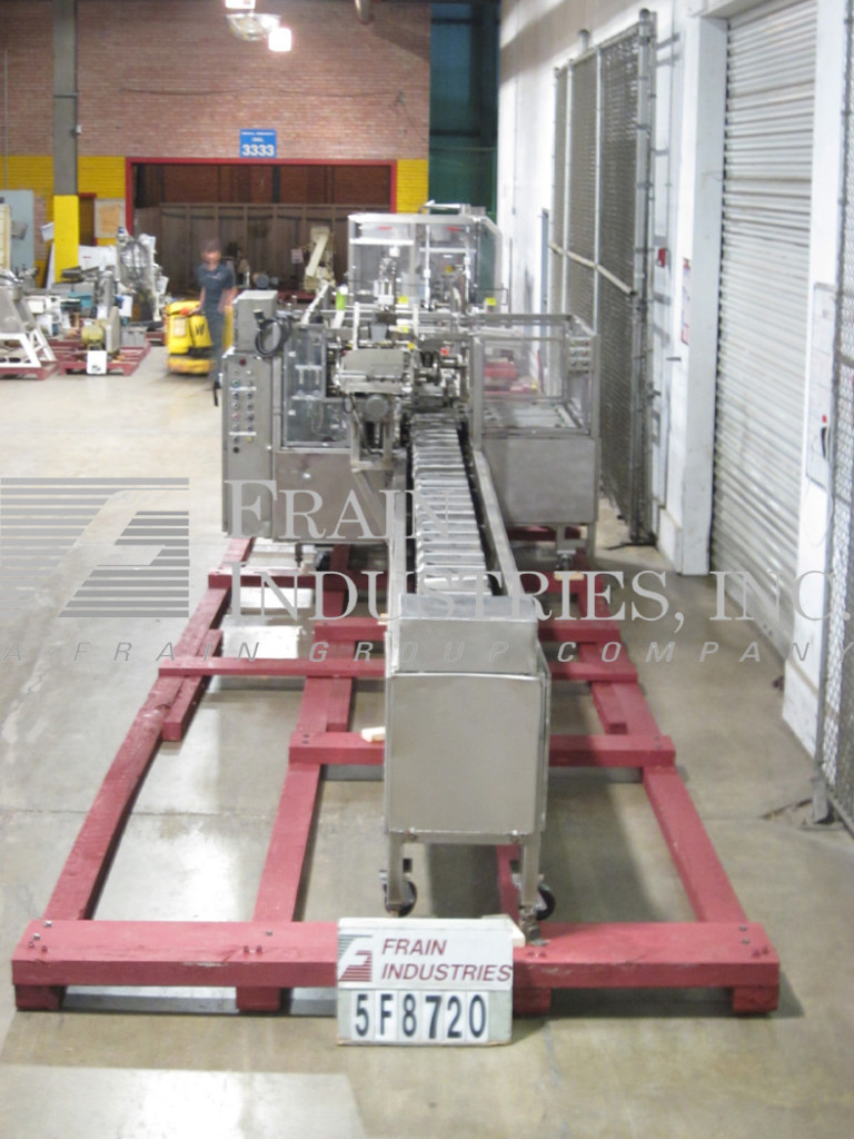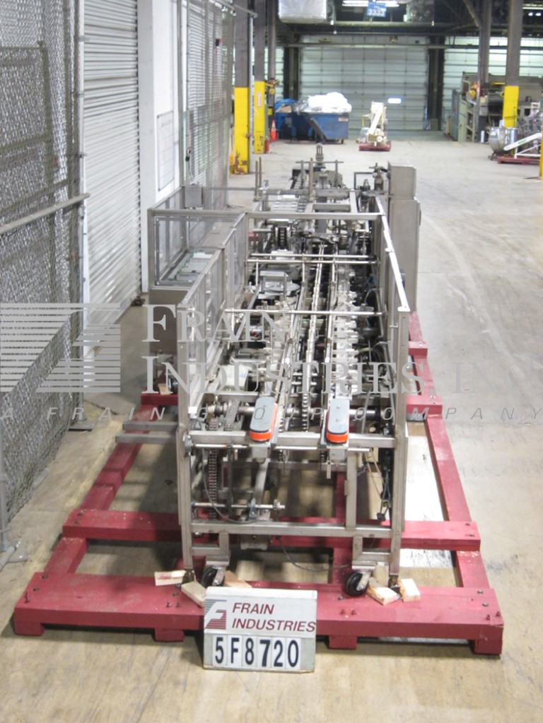 返回所有设备Tisma型JV型,自动,连续运动水平,胶盒额定50至200盒每分钟-取决于材料和应用。3条可调链设置在10"中心2"宽x 3"高耳。纸箱尺寸范围:长度2"至7";1/2"到3-3/4"宽度;深度5到9英寸。配备200“长在进料输送机固定桶10”长x 1/2“宽x 4“高产品桶,36“长链驱动的空白纸箱杂志,2头纸箱pic-n-place扶轮社、旋转桶凸轮与桨顶部装载机产品限制,没有产品/纸箱,纸箱/没有产品传感器。襟翼关闭和20“长双皮带压缩部分。控制面板有A/B控制器和DL20数字显示,具有启动,停止,运行,慢跑,自动,手动顶按,桶推控制e-stop,安全防护。安装在基础框架与脚轮。