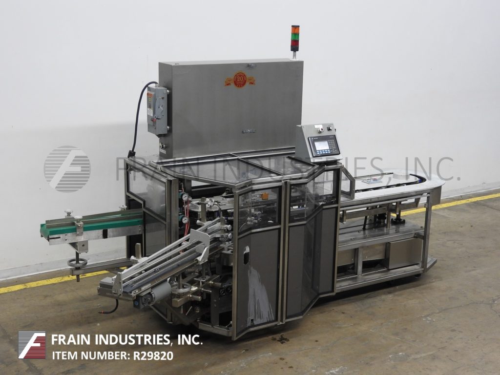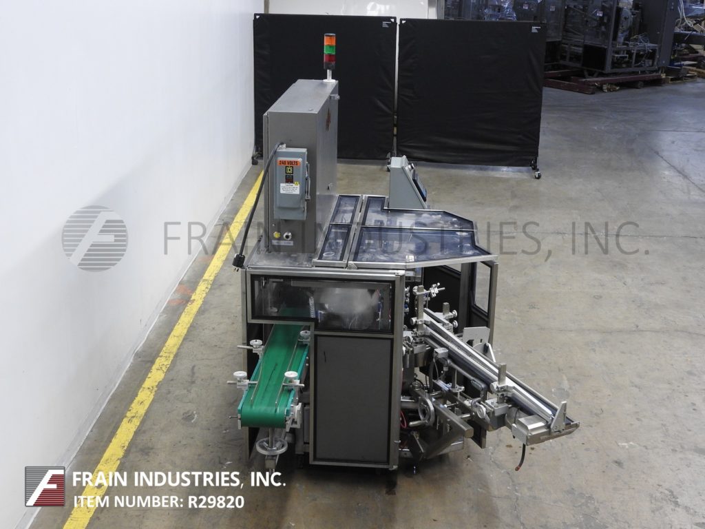 返回所有设备Tisma TC-50E型,半自动,垂直手动装载,直卷纸箱,额定每分钟25至150个纸箱-取决于材料,应用和操作者的灵活性。纸箱尺寸范围:每应用一次。配备1链设置在5"中心,48"长链(2)自动空白纸箱杂志,(2)头旋转picn -place, 36"长手负载区域与操作员紧急停止每边,主要和次要皮瓣关闭器。控制面板有A/B控制器与A/B面板视图控制和启动,慢跑和e-stop按钮与统计灯条。安装在重型基础框架上,采用联锁安全防护,