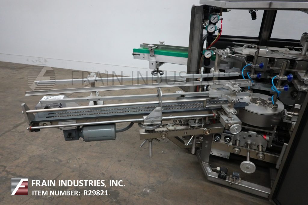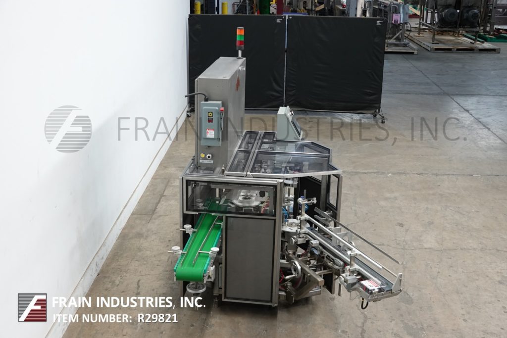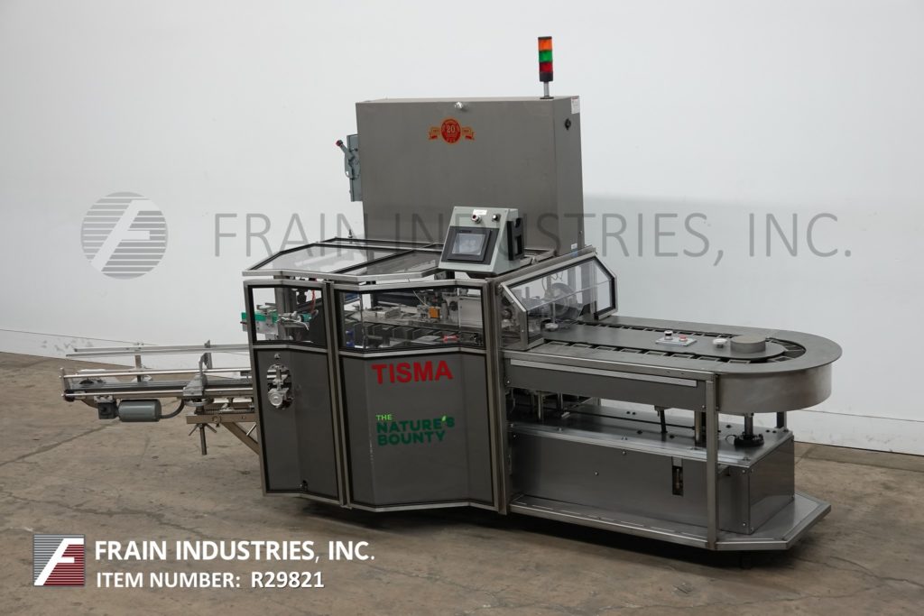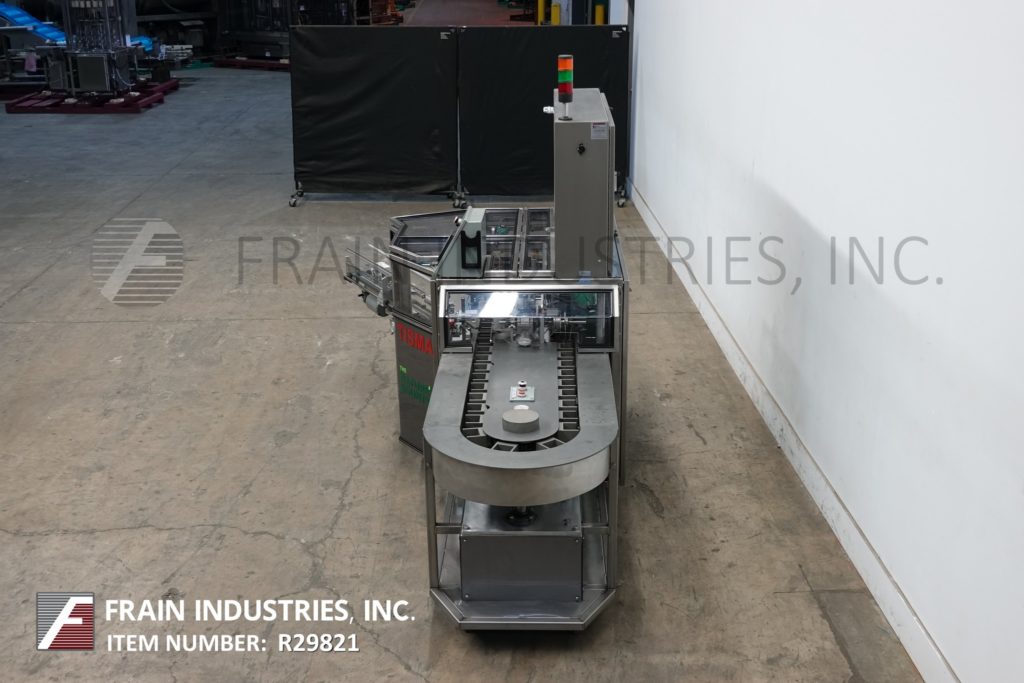 返回所有设备Tisma TC-50E型,半自动,垂直手动装载,直卷纸箱,额定每分钟25至150个纸箱-取决于材料,应用和操作者的灵活性。纸箱尺寸范围:每应用一次。配备1链设置在5"中心,48"长链(2)自动空白纸箱杂志,(2)头旋转picn -place, 36"长手负荷区域,操作员紧急停止每边。控制面板有A/B控制器与A/B面板视图控制和启动,慢跑和e-stop按钮与统计灯条。安装在重型基础框架上,采用联锁安全防护,