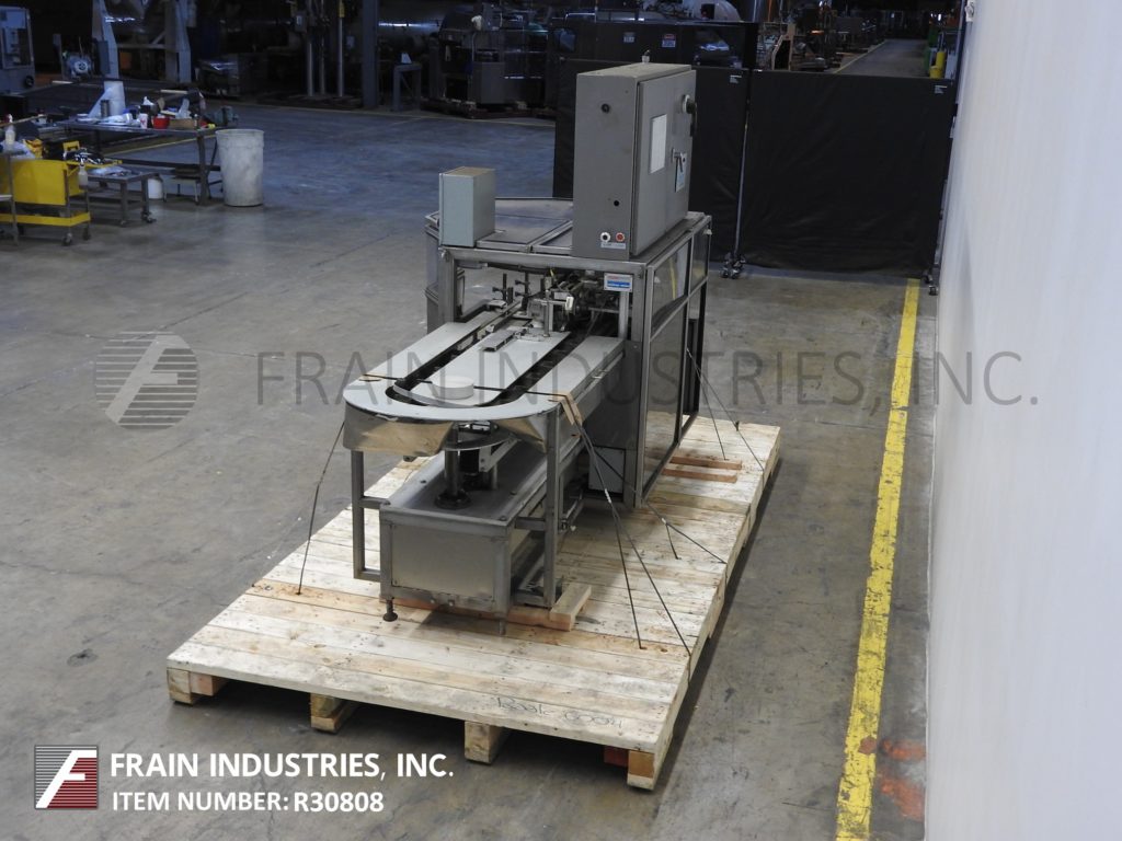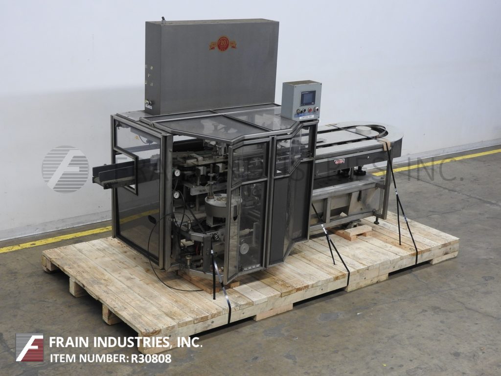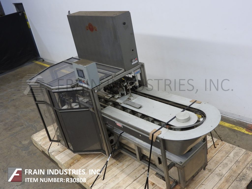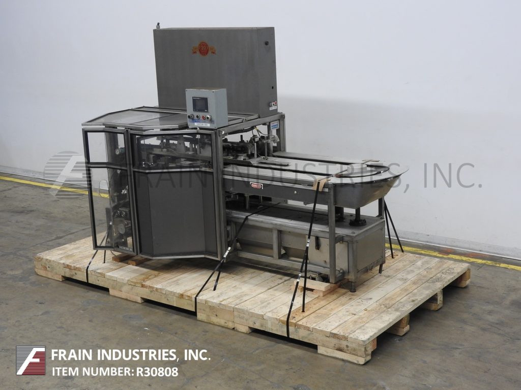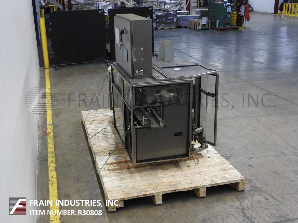 返回所有设备TISMA Model TC50DE,半自动,垂直手动载荷盒,每分钟60至150箱 - 取决于材料,应用和操作员灵活性。纸箱尺寸范围;1“至6”的长度,x 5/16“到3”宽度x 2-1 / 2“到8”深度目前设置为直卷,但可以运行具有适当变化件的反向夹住或胶带纸盒。配有1个链,设置在5英寸中心,带2-1 / 2“长x 2-1 / 2”宽x 1-1 / 2“深固定产品桶,空白纸箱杂志,(2)头旋转照片那36" long manual load area on each side and self contained lube and vacuum systems. Control panel has A/B CPU controller and Electro Cam 5000 PLUS controls, with paneview and start, stop, reset, e-stop push buttons. Mounted on heavy duty base frame with interlock safety guarding, casters and leveling legs.