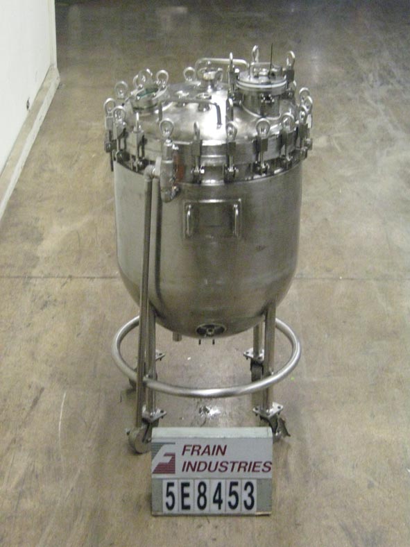 返回所有设备托兰,100加仑,316不锈钢,全蒸汽夹套反应堆。32" ID x 36"深的产品碗,有螺栓向下翻转盖(2)4"外径,现场玻璃端口,(1)6"外径法兰端口,可移动进料管,(3)2"外径卫生顶部端口。完整的夹克与完整的内部真空外壳评级MAWP 30 psi @ 300度f, MDMT -20度f @ 30 psi,和一件夹克的评级MAWP 100 psi @ 300度f和MDMT -20度f @ 100 psi(2) 1 1/2“ID夹克港口。碟底有3”外径卫生中心底部排放与16”地板间隙,1”外径螺纹温度探头端口,并安装在(4)腿不锈钢底座框架与侧把手和脚轮。