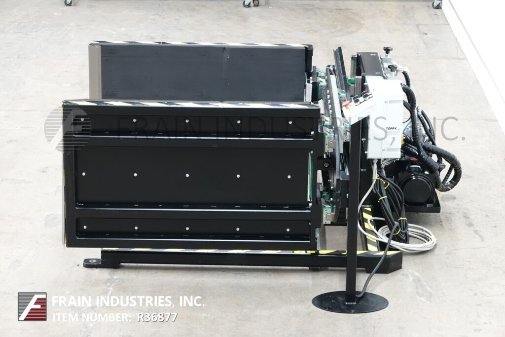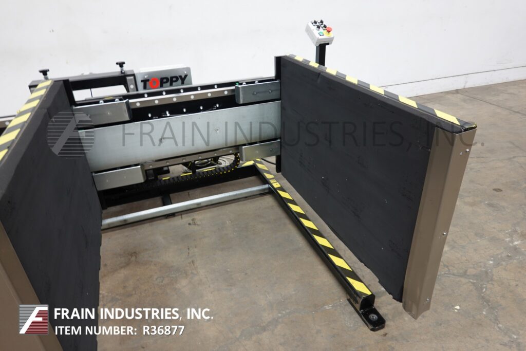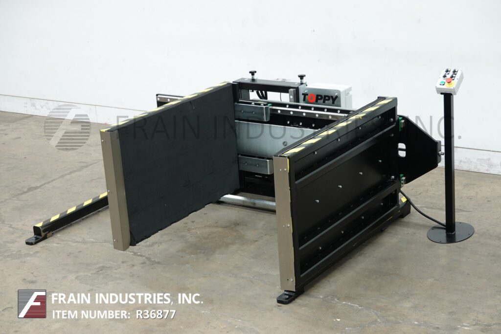 Back to All EquipmentToppy America, Model Side Mover, stationary pallet transfer machine. Rated up to 3000 lbs depending on materials and application. Equipped with (2) 51" long x 31" high padded walls, electric drive motor and push button controls. Designed to transfer product from one pallet to another when inverting is not possible.