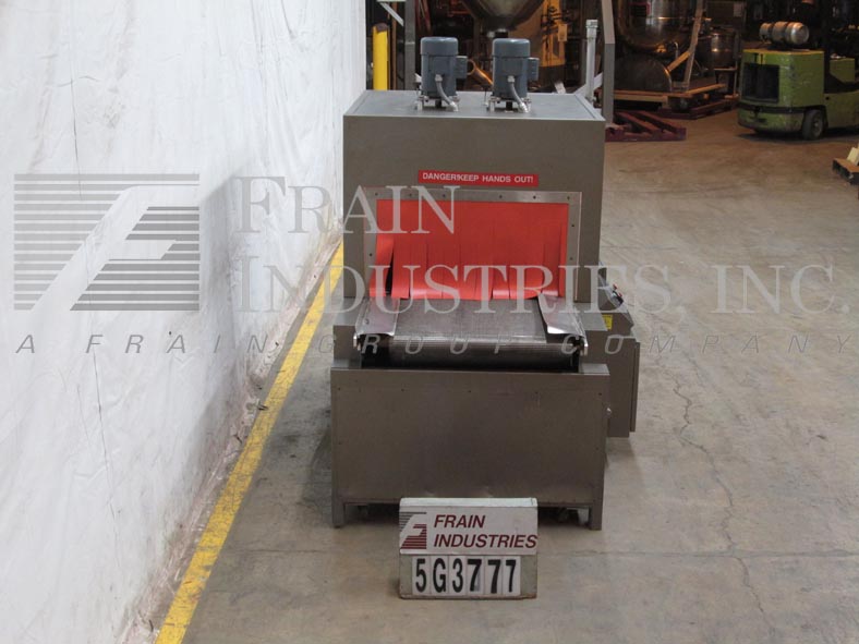 返回所有设备TPA T-1000系列单室收缩隧道,型号1026T。配备33“宽和17”高光圈,50英寸长室和2顶安装的1HP鼓风机电机。30英寸宽的93“长不锈钢网带,具有34”高进入和放电。控制面板采用数字温度控制器,启动/停止,输送速度控制器和e-stop。