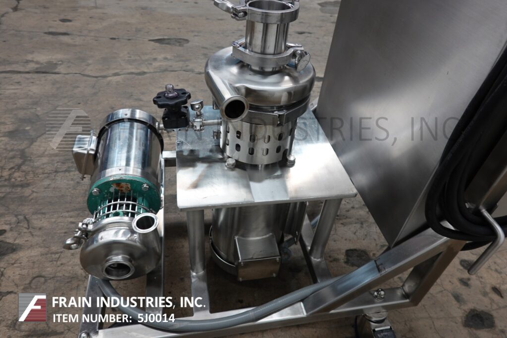 回到所有设备Murzan型号das -50,卫生,不锈钢,55加仑的滚筒卸料机,每小时有几个滚筒-取决于材料,应用,泵配置和操作人员的灵活性。能够泵送由金属、塑料或纤维制成的滚筒,带衬垫或不带衬垫,能够处理大多数粘度高达150,000厘泊的粘性产品和高达6英寸的固体。CIP可选适配器。配备Murzan双隔膜泵与21”不锈钢从动板。无润滑,无油空气阀,24“长x 27”宽滚筒在进料和排料输送机27“长x 2”外径滚筒设置在4-1/2“中心,2-1/2”间隙和滚筒中心部分26“长x 1-1/4”外径滚筒设置在3-1/4“中心,2”间隙。控制面板有泵重启和关闭,袋吹回打开/关闭DUS定位器,上升。降低,关闭泵电源打开,关闭和滚筒定心延长和减少控制开关。安装在不锈钢框架上,有滚轮在进料和出料与脚轮。