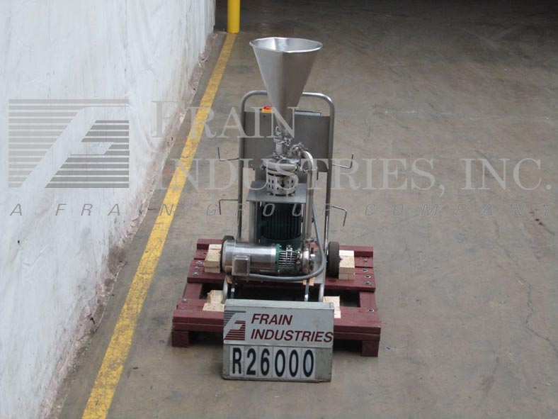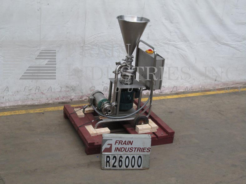 返回所有设备三叶草型号F2116MDG, 316不锈钢三搅拌机,吸收率取决于材料和应用。配备15" OD x 21"深漏斗式304不锈钢产品料斗,1 Hp离心供液泵有2" OD三三叶草三搅拌机和泵进口/出口与5 Hp底部搅拌机电机驱动。控制面板有A/B控制与触摸板控制器三搅拌机与数字读数,e-stop和安装在不锈钢底座框架锁定脚轮。