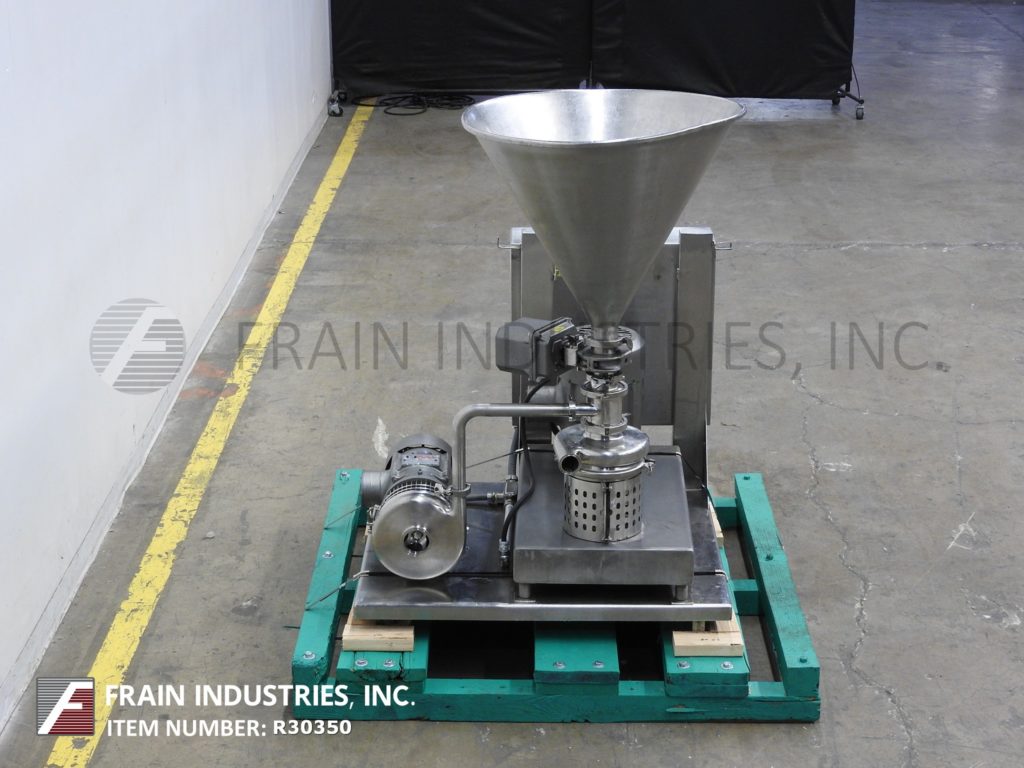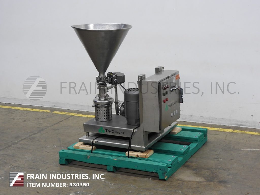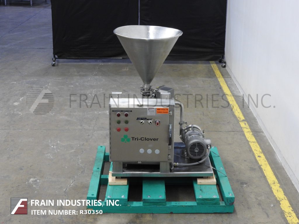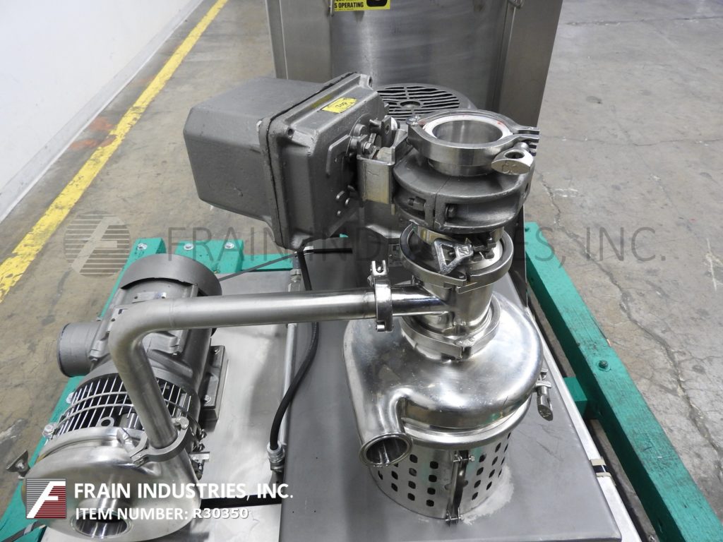 返回所有设备Tri-Clover,316不锈钢模型三搅拌器,吸收率从0到45加仑的液体,每分钟0至50磅干燥产品 - 取决于材料,应用和机器配置。配备3½“OD / 3”ID干燥产品入口,3 HP离心液供应泵,2“OD / 1.5”ID液体进料,10 HP混合头和2½“OD / 2”ID放电。控制面板有按钮开始/停止控件。安装在带脚轮的不锈钢推车上