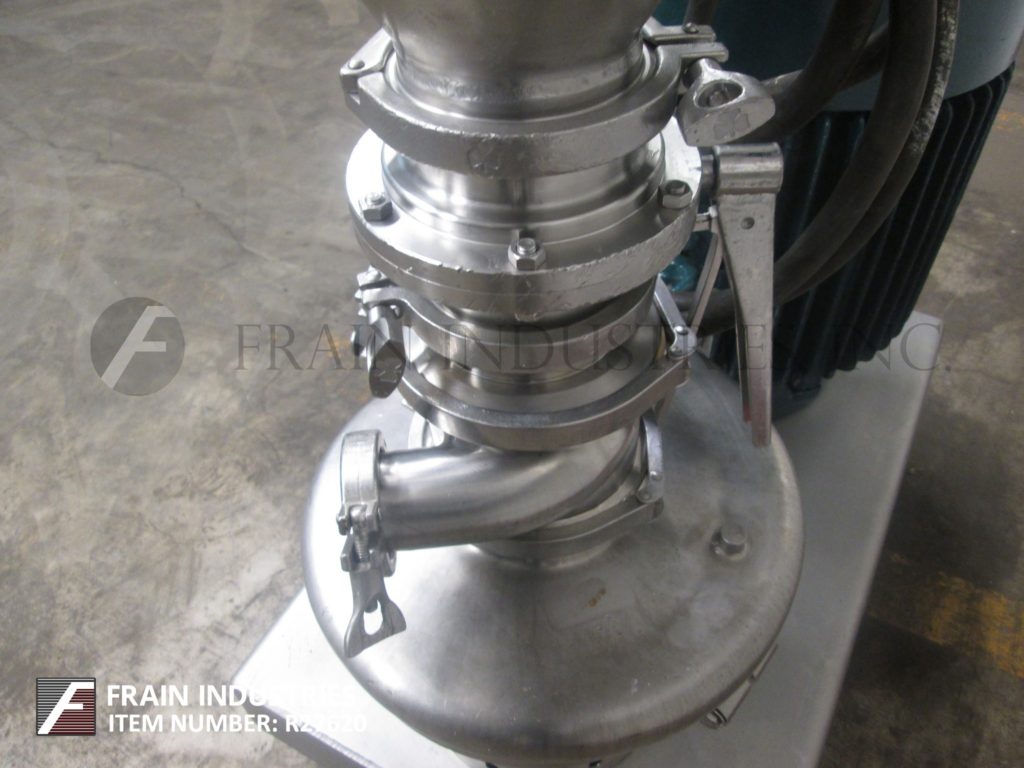 返回所有设备三叶草,不锈钢三叶搅拌机。每分钟可输送200加仑液体和350磅粉末,具体取决于吸收率、材料和应用。配备32"外径x 25"深漏斗式不锈钢产品料斗,带升降盖和蝶形计量阀。30 Hp离心泵有2½“OD/2”ID三钳入口和3½“OD/3”ID三钳出口。安装在不锈钢底座上,支架高度可调。