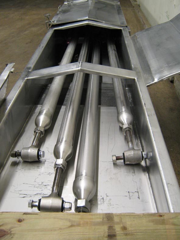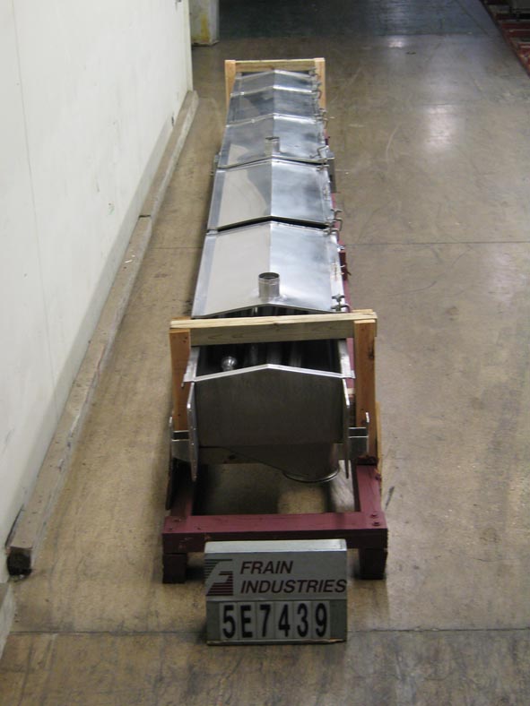 三套,24英寸宽X 264“长,不锈钢振动输送机。配备22'L X 34“W不锈钢盖,具有(2)4”直接入口端口,(2)放电(1)10“L X 24”W和(1)10“DIA。