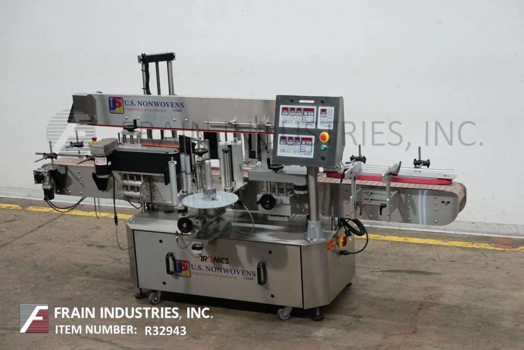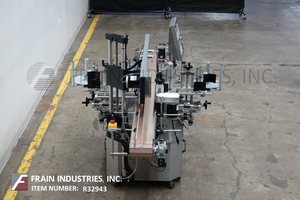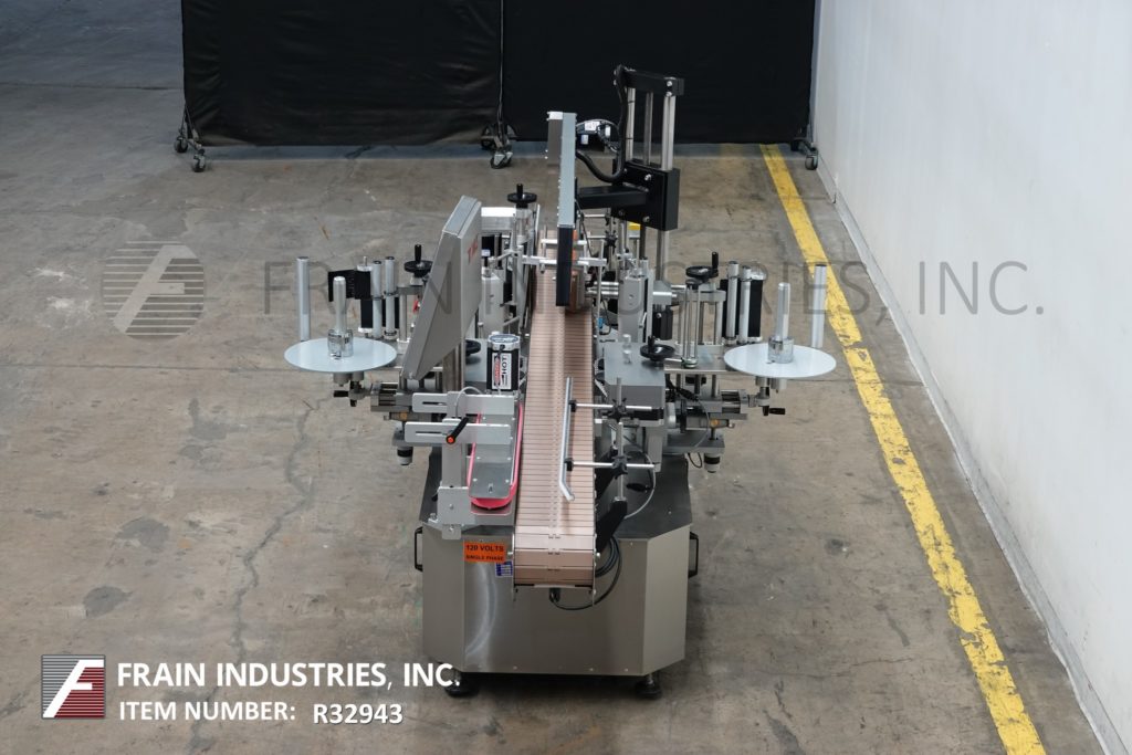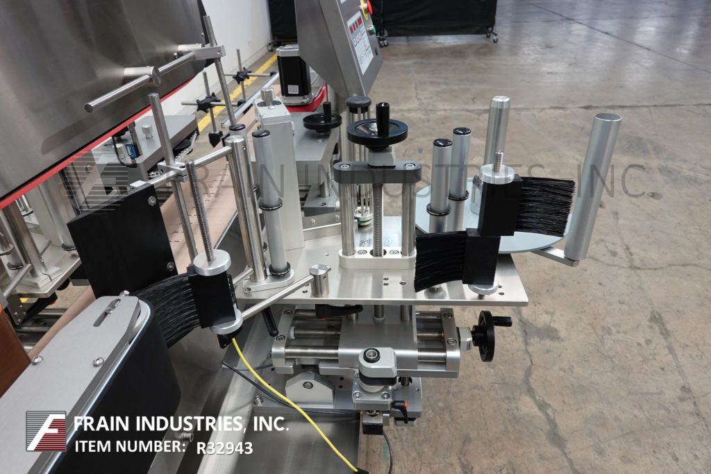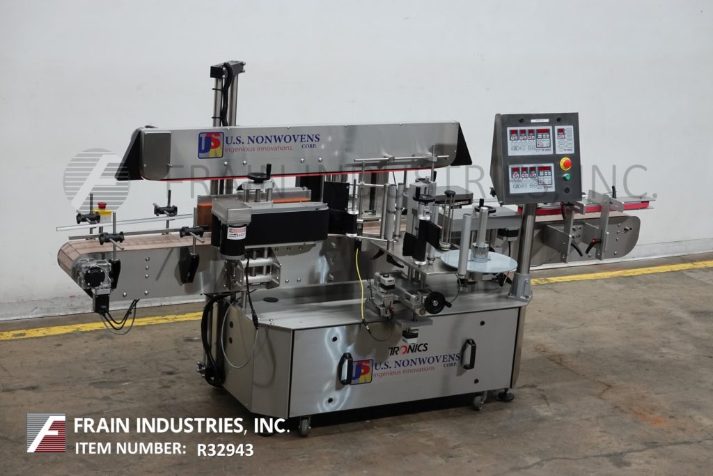 返回所有设备Tronics型号3S3,不锈钢,右手,正面,背面和包装,压敏标签。在正面和背面标签上的额定为100“至1200”,在包装标签上的额定为50“至600”,每分钟产品的数量取决于材料和应用。标签尺寸范围:1"至8-1/2"的高度;长度为12英寸,可处理直径达8英寸的容器。配备120“长x 7”宽与导轨可调塑料缩醛树脂产品输送机,60”长x 1”宽上按住输送机,间距,调整链条的容器平方,双重标签与9“高削皮器板块和16”长x 6”高边包装输送机所有手动曲柄可调