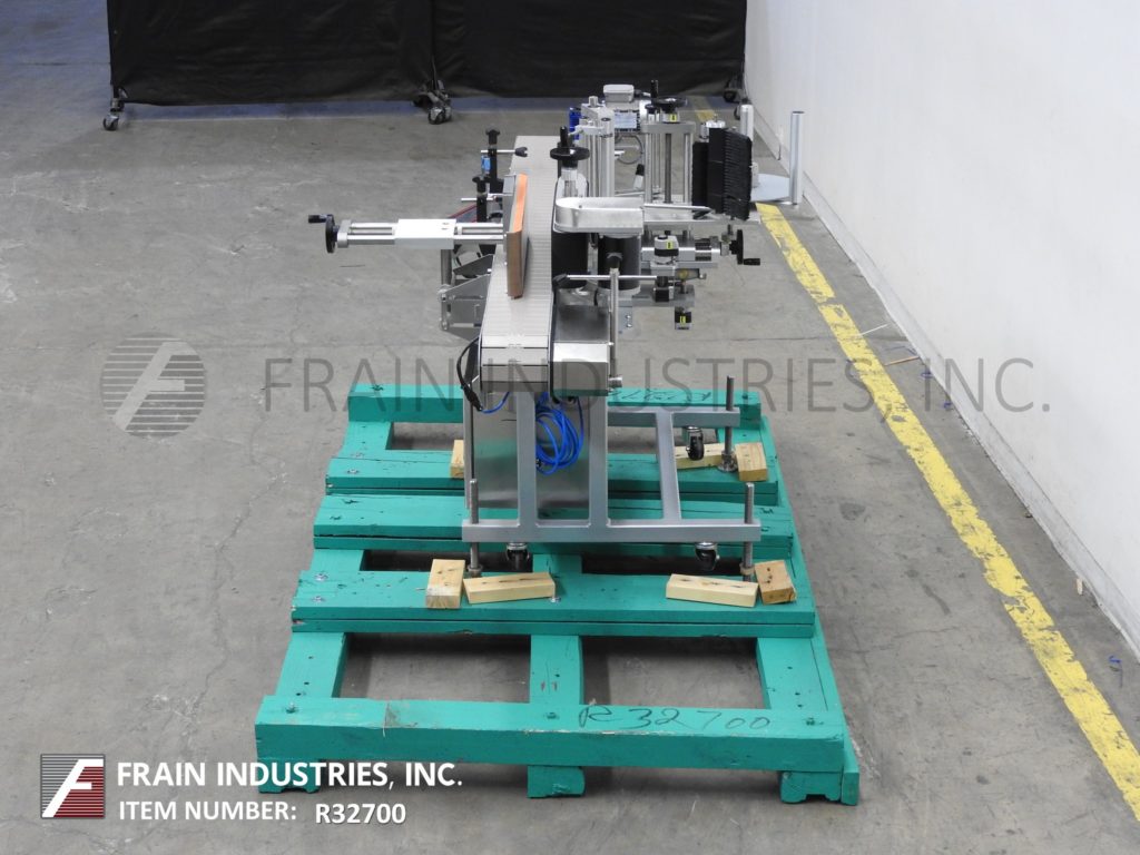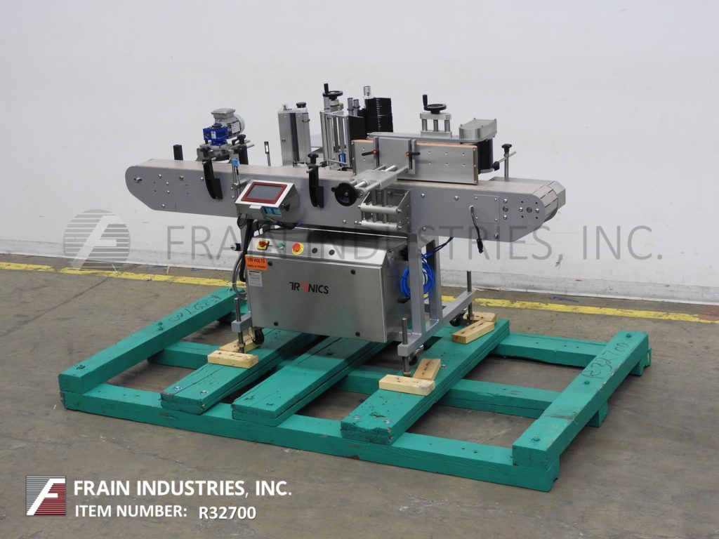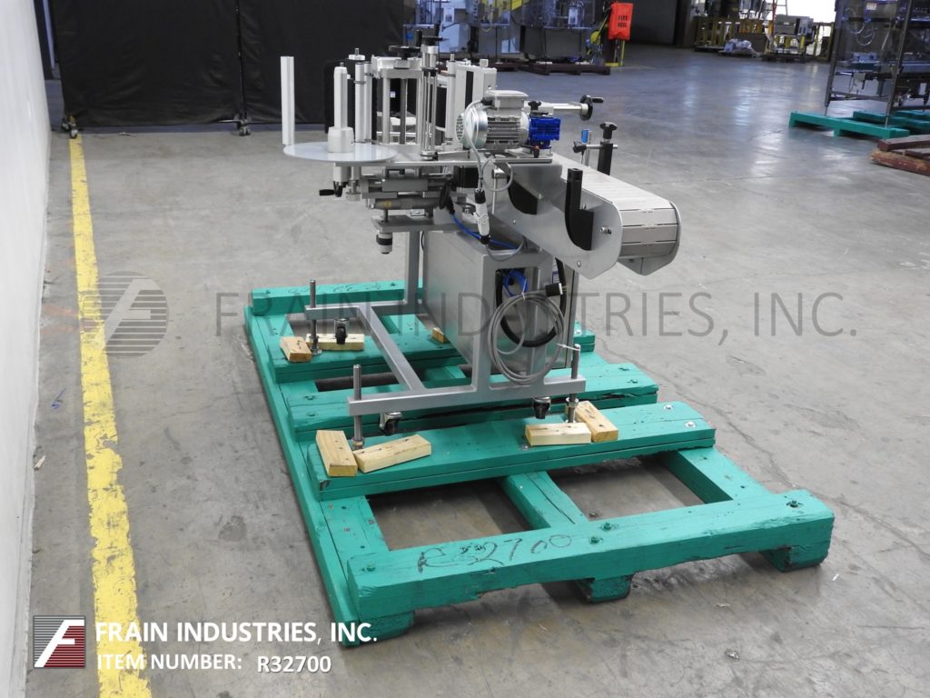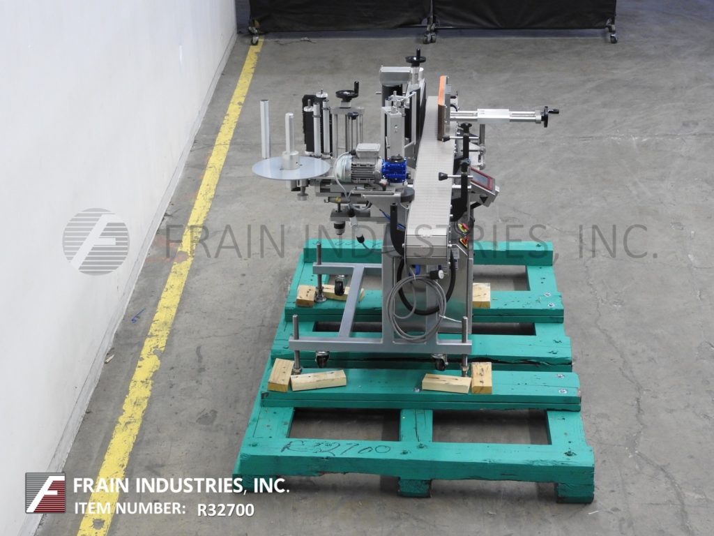 返回所有设备Tronics,型号S1550,步进驱动的,压力敏感的包裹或擦除标签,额定值为16'至98'英尺,每分钟,产品数量,具体取决于材料和应用。标签尺寸范围:0.59“至8.4”的宽度x 0.78“至18”,长度(具有正确的更改零件)和精度 + / - 1/32”。配备了84英寸长x 6“宽塑料delrin产品,带有凹凸轮的索引和可调节的导轨。带9英寸高的剥离板和侧面包裹输送机的单标签头,能够在3英寸OD芯上使用13英寸的标签卷轴OD进行斑点和包装标签,并且可以调节手动曲柄。控制面板具有触摸屏控件和电子停靠。安装在带脚轮和平整腿的基础框架上。