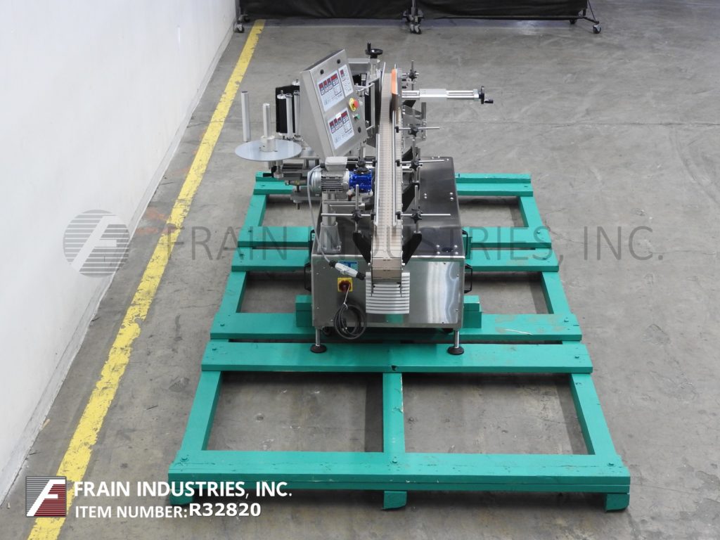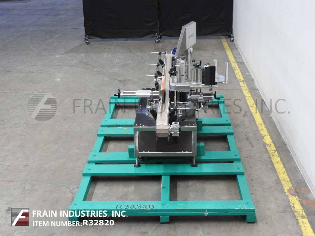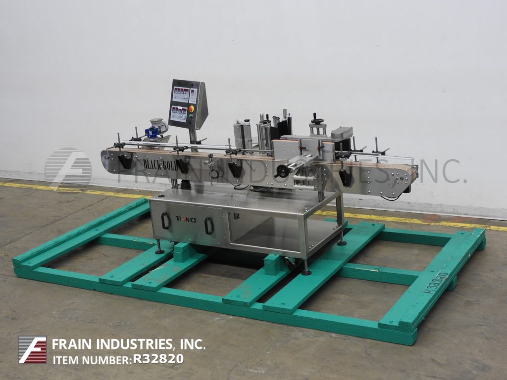 返回所有设备Tronics S30型,不锈钢,开式框架,步进电机,压力敏感,包装标签额定每分钟100"至1200 "标签-取决于材料和应用。标签尺寸范围可达:10英寸高× 29英寸长,精度可达+ / - 1/32标签放置和容器从5ml瓶到10加仑容器都有适当的更换部件。配备4“宽x 120”长塑料缩醛树脂产品在进料输送机32“饲料/卸料高度、间距轮索引、导轨可调,没有容器/没有标签,单一的标签头九个半“高剥皮机板和6“高一边“21”长x包装带,13“OD标签卷1 - 1/2“OD核心和手动曲柄可调。控制面板有触摸板控制与读出和多达100个工作记忆与e-stop。安装在不锈钢框架与脚轮和调平腿。