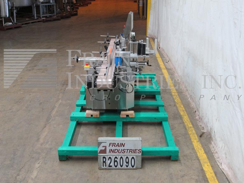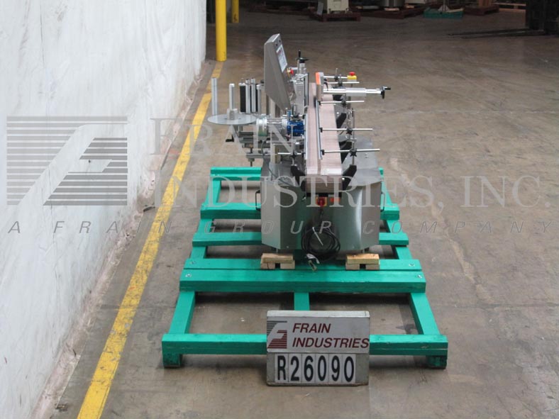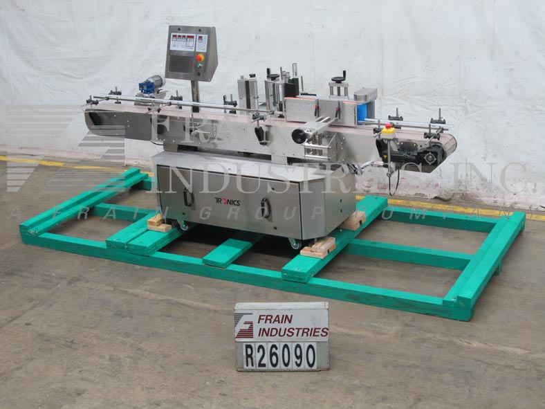 返回所有设备Tronics型号S3S,内联,不锈钢,压力敏感,包装贴标器额定高达1,200英寸的每分钟标签 - 取决于材料和应用。标签规格:宽度为1/2“至9”;1/2“至18”的长度。配备120英寸长的x 7-1 / 2“宽Delrin皮带输送机,可调节导轨轨道,产品时序轮,9英寸高削皮器板,20”长x 5-1 / 2“高包装带,手工曲柄高度和旋转头触摸板控制器。安装在带有高度可调节腿和脚轮的不锈钢框架上。