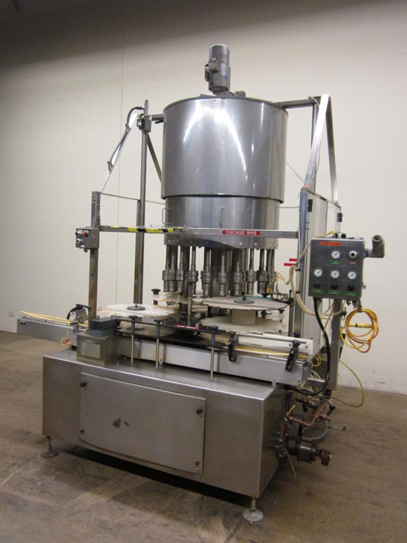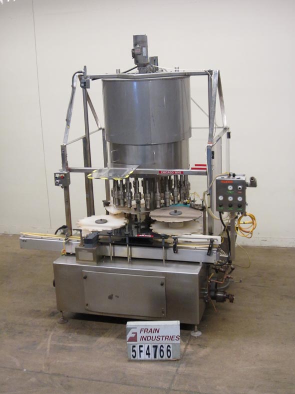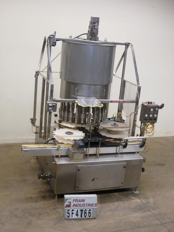 返回所有设备美国灌装机型号PMC24自动24头,不锈钢,旋转卡盘盖额定从240到700容器每分钟-速度取决于材料和应用。容器尺寸范围:最高4英寸直径x最高6-1/2英寸高度。配备3-1/4"宽x 96"长的输送机,星轮在饲料和排放和24个精密扭矩空气卡盘盖头在5"中心,没有瓶/没有盖,炮塔保护,和仪表板与线,卡盘,分选机和滑槽空气仪表。