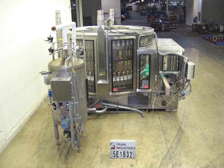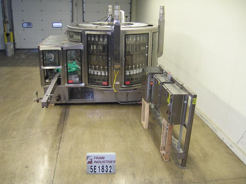全自动,56头,316 S/S,旋转净重填料,可达600 cpm。(取决于应用程序)。82"直径工作台,56头,设置在5 1/2"中心。有一个集装箱的尺寸范围:(1“4”直径)x(4 1/2“12”H)。星形轮横向进给/放电,定心铃铛,没有容器/没有填满,和离心泵溢流返回,填补/干净,毛/净体重,空气阀的逻辑控制,屏障innerlocking,聚碳酸酯守卫,所有不锈钢结构安装在一个不锈钢基地。