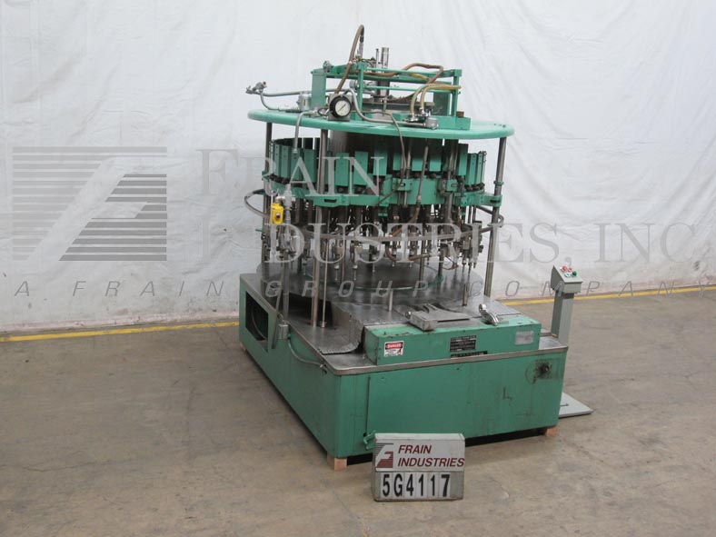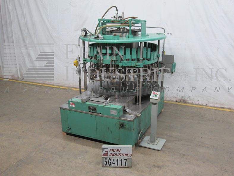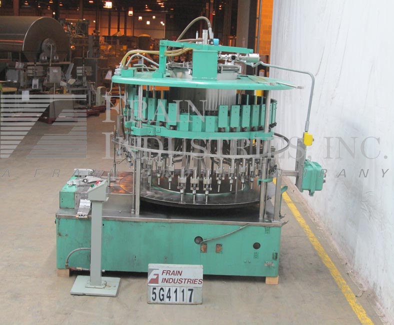 返回所有设备美国灌装厂VE40L型自动40头,旋转,真空灌装机额定每分钟40至340个容器-取决于材料和应用。容器尺寸范围:1“到4-3/4”直径x 4-1/2“到12”高度。配备48英寸长× 2-1/2英寸宽的产品输送装置,螺旋进料斗和出料斗,72英寸机头有40个灌装头,5/8”外径喷嘴设置在5”中心顶置的产品进料系统上,有溢流,自下而上灌装,无容器/无灌装。控制面板带有产品体积,机器清洁开关,jog,手动真空启动和e-stop按钮控制。安装在重型基础框架。