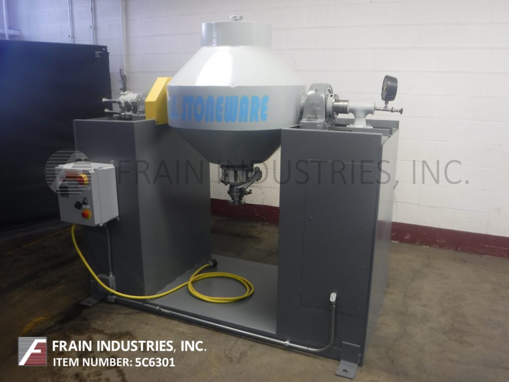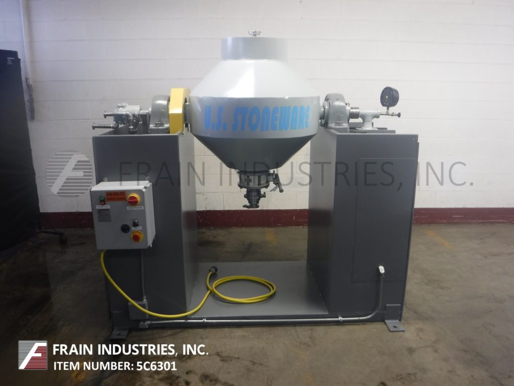 返回所有设备U S Stoneware,夹套,真空额定,双锥混合器,每小时产品 - 取决于材料,应用和机器配置。总容量:7.2英尺。工作能力:4辆FT³。全套套房:400°F的30 psi真空额定值:30 Hg。不锈钢接触部件,钢外壳和框架。配备2“OD顶部螺纹端口,9”OD / 6“ID法兰底部放电,36”落地间隙。安装的底架。