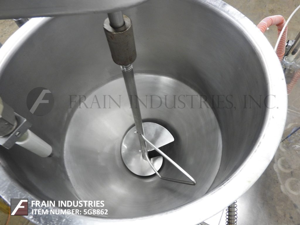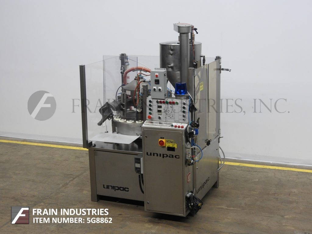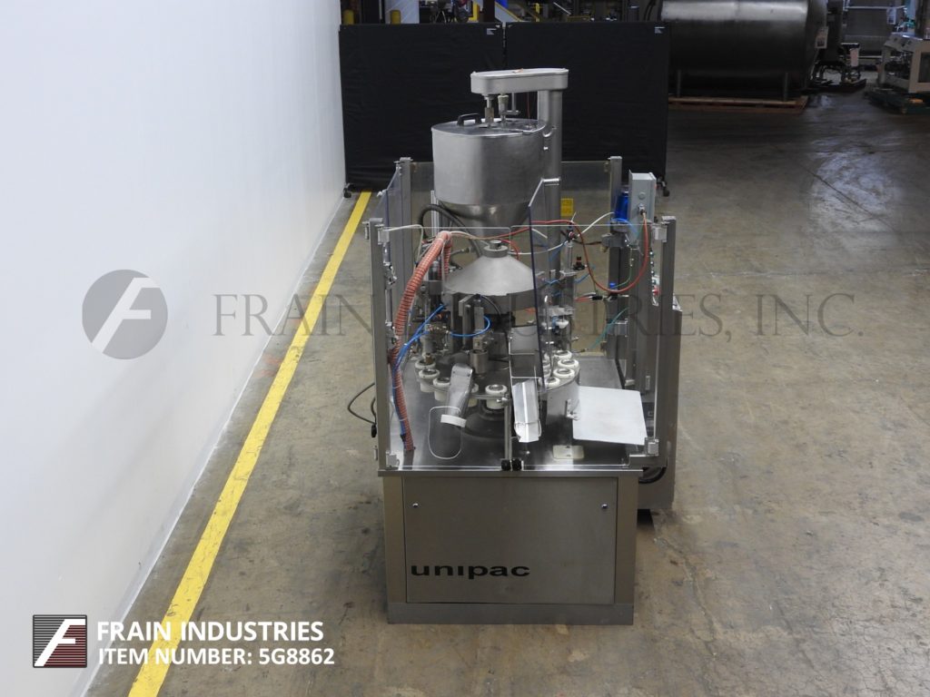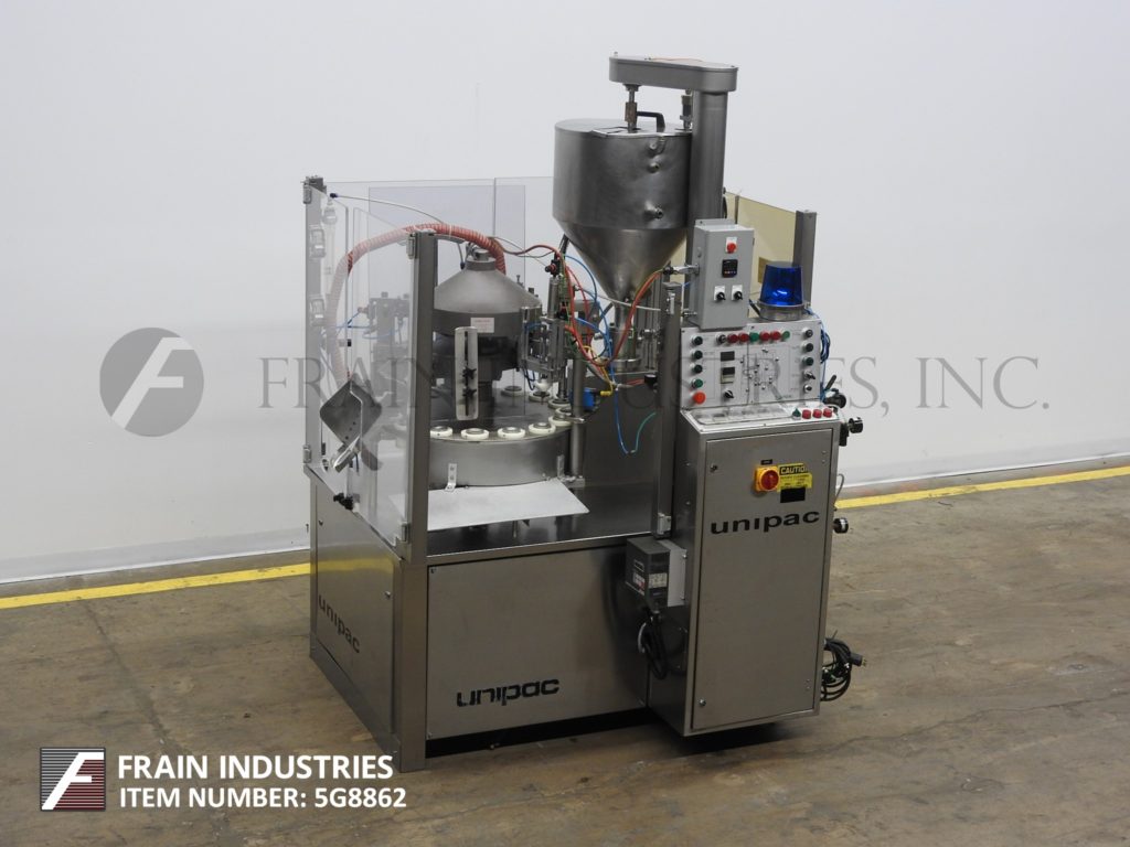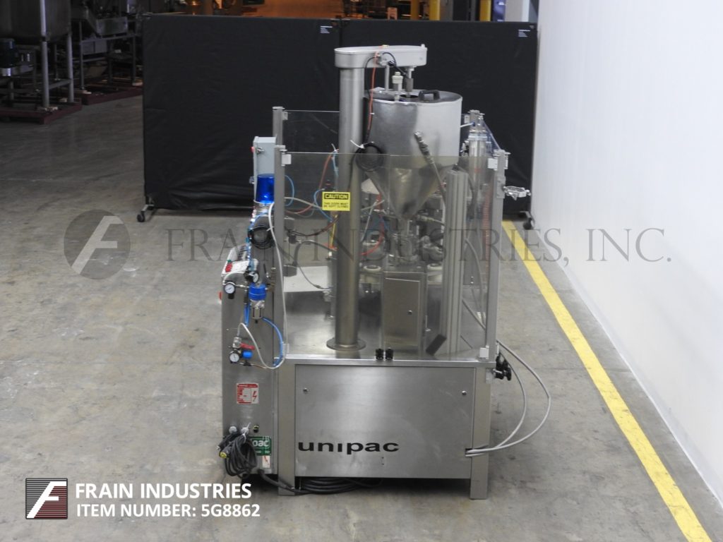 返回所有设备UNIPAC,型号银100,自动,热空气,塑料或层压管填料和封口机。每分钟10至40个管 - 取决于材料,应用和机器配置。管尺寸范围:直径10mm至50毫米;高度为50毫米至250毫米。填充范围范围:3ml至230ml,每个应用程序所需的适当更改部件。配备管杂志,管压缩机,空气冲洗,18“ID X 20”深夹套不锈钢产品料斗随着搅拌和水平检测,16个口袋旋转炮塔,注册,底上填充,无管/无填充,热空气密封系统具有浮雕编码器,装饰站和联锁安全防护。控制面板有按钮开始/停止和数字温度控制。取向器开/关开关,无产品,产品水平,搅拌,管清洗,鼓风机和加热器。安装在重型基础框架上。