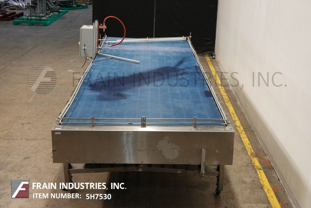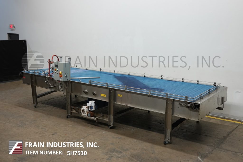 返回所有设备72“宽X 232”长,不锈钢累积表,每分钟容器数/小时 - 取决于材料和应用。配备72“宽X 232”长累积部分,可调节导轨和42“至48”,进料和排放高度。输送机由1½HP驱动器提供动力。控制面板具有带启动,停止和方向开关的速度控制器。安装在(8)腿不锈钢框架上,带锁定脚轮。