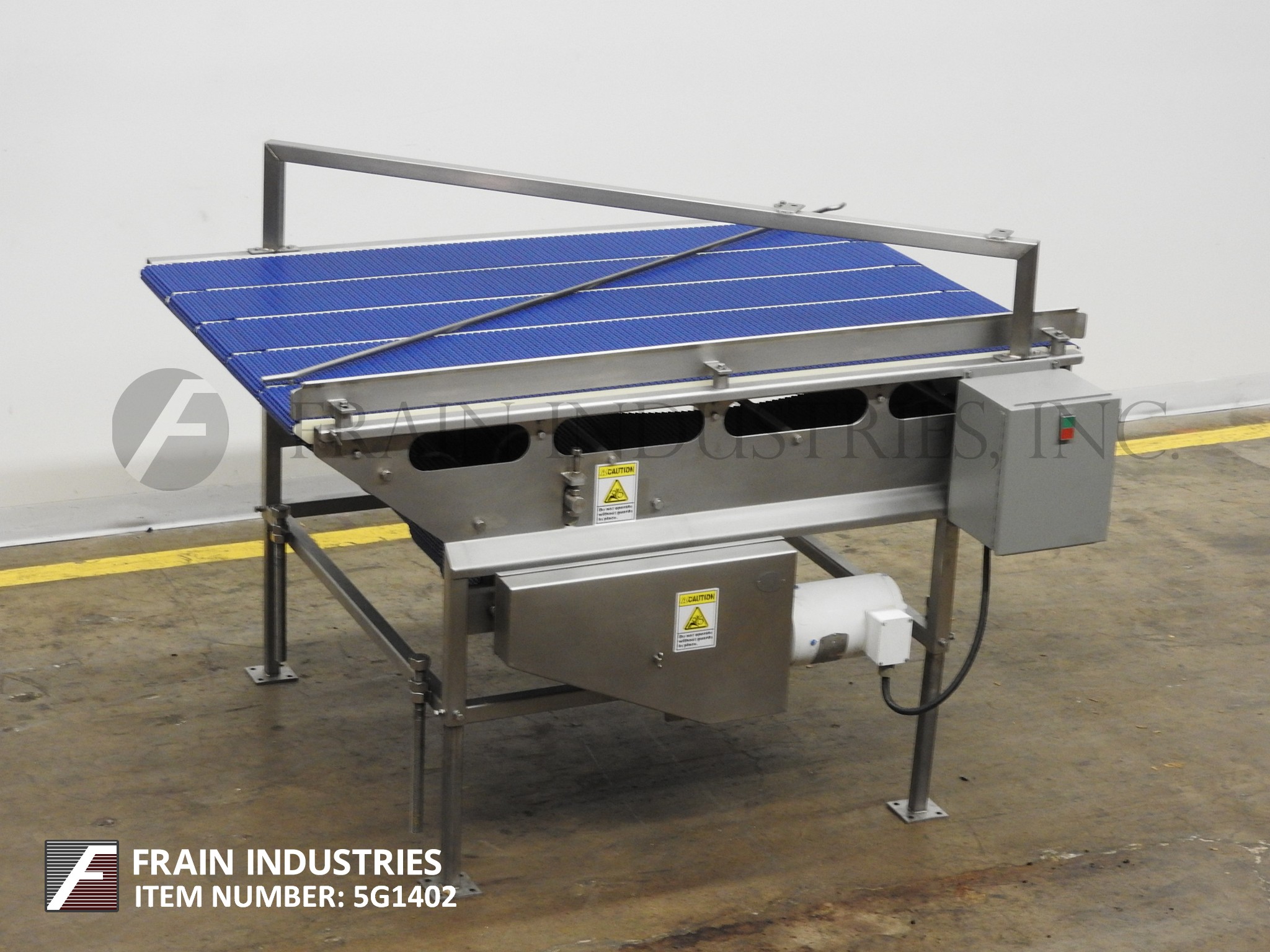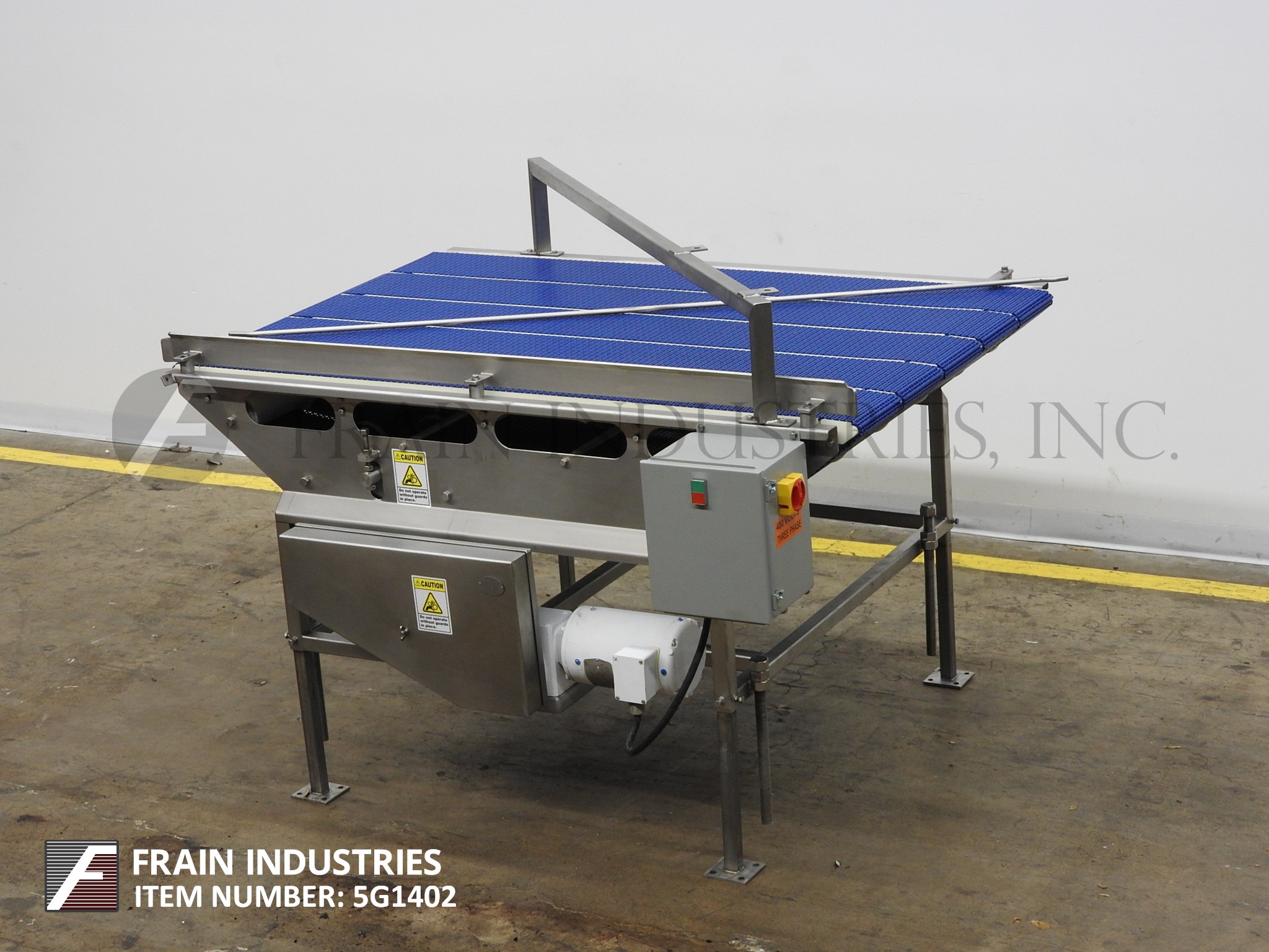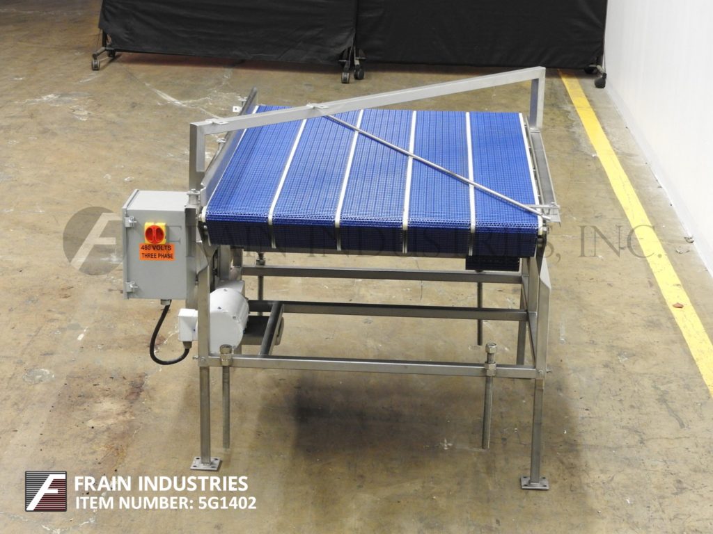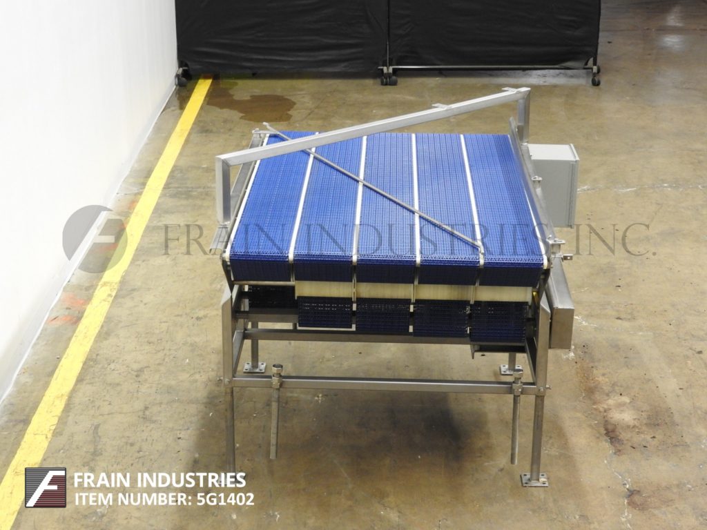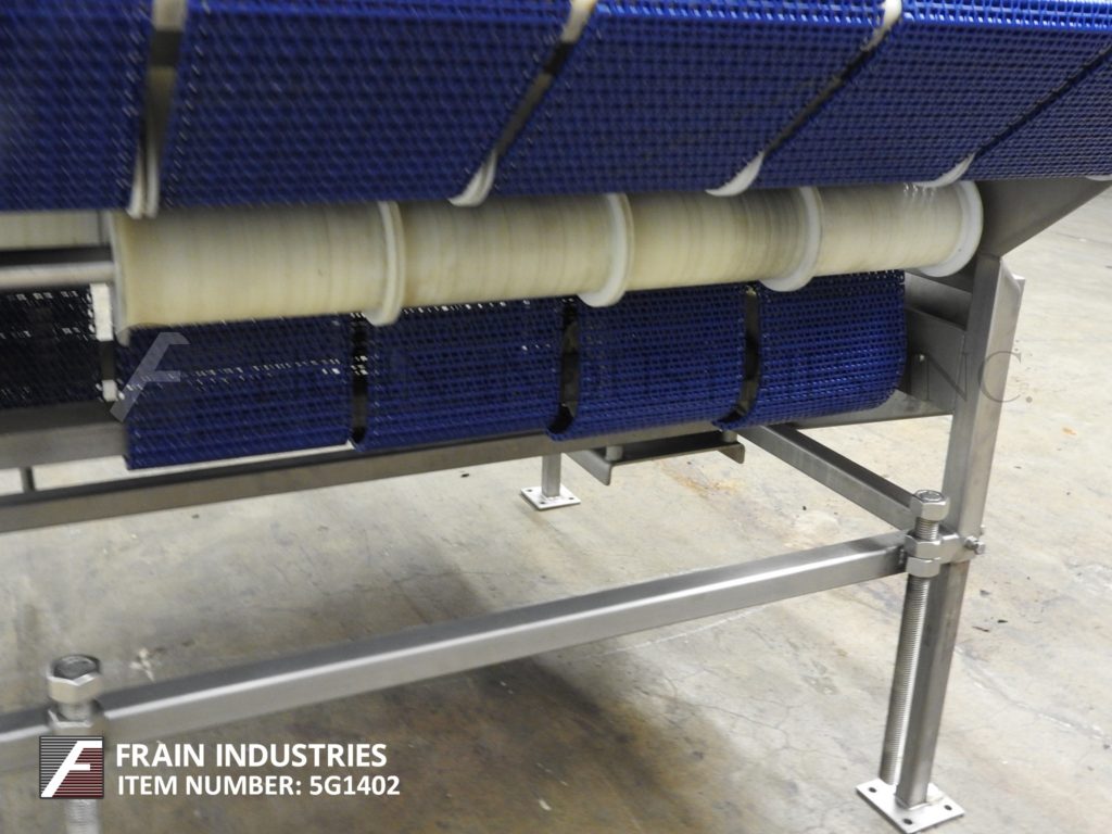 不锈钢5车道累积表68“(l)x 42”(w)。配备1/4“(H)可调节的产品臂,3 1/2”(H)导轨。安装在不锈钢框架上,最后用于托盘灌装线。每个车道跑得更快,然后下一个。