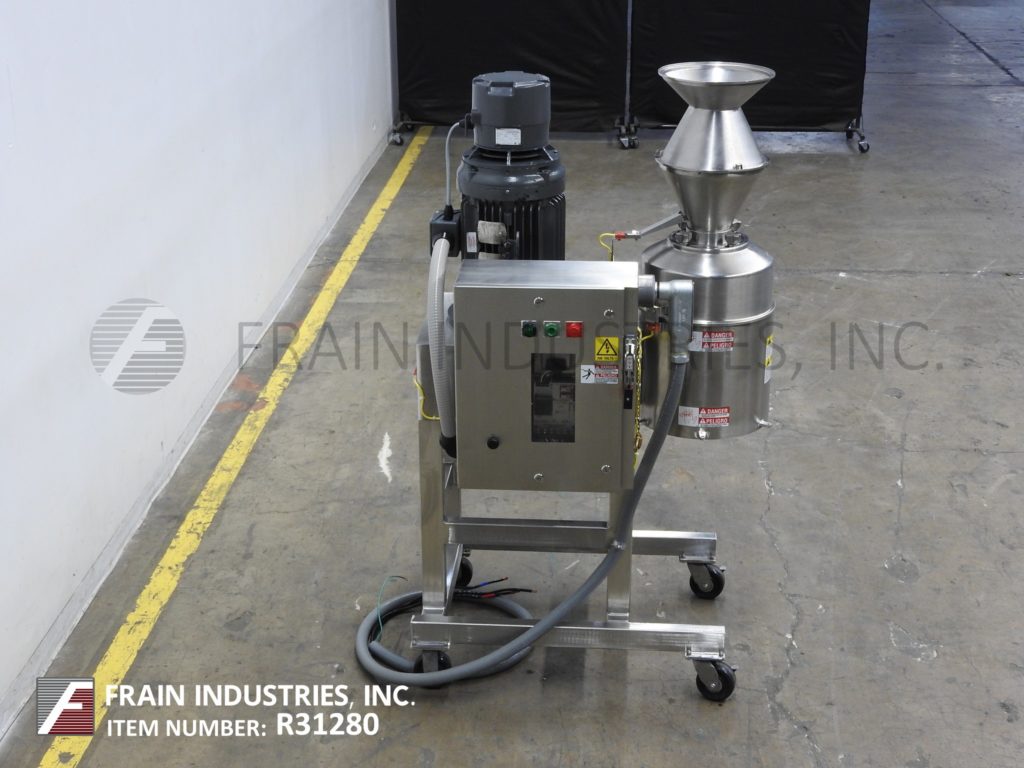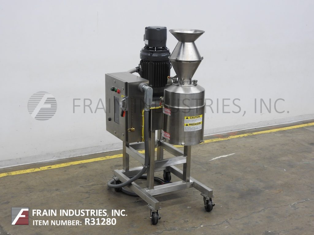 回到所有设备Urschel,1700型Comitrol,不锈钢,还原磨机,用于自由流动的干燥和半干燥产品,每小时磅产品数量 - 取决于材料和应用。配备12“ID X 16”深双锥形产品料斗,5“直径馈电,6”直径X 3“深铣床,具有(4)2½”狗腿式高速旋转叶轮和具有垂直刀片的切割头,20“直径产品放电,25”落地间隙。由15 HP电机驱动器供电。控制面板推动瓶子启动/停止控制。安装在带脚轮的不锈钢底座上。操作包括共同,造粒,铣削,切片,液化,分散和稀土。改变每个申请所需的部件。