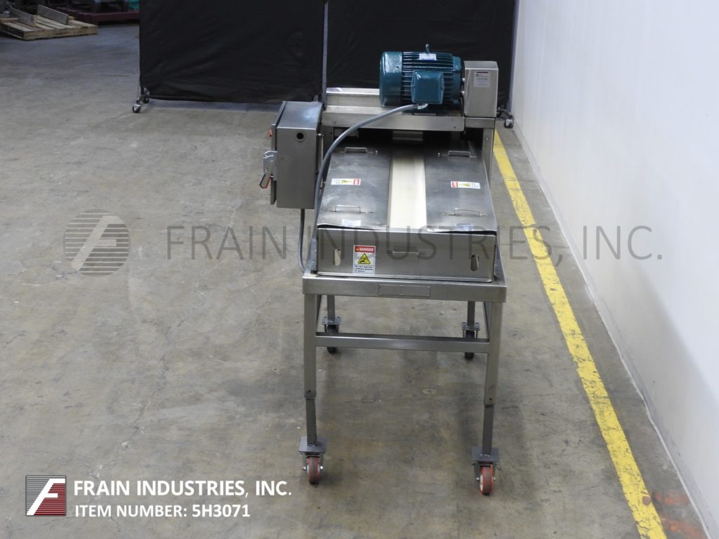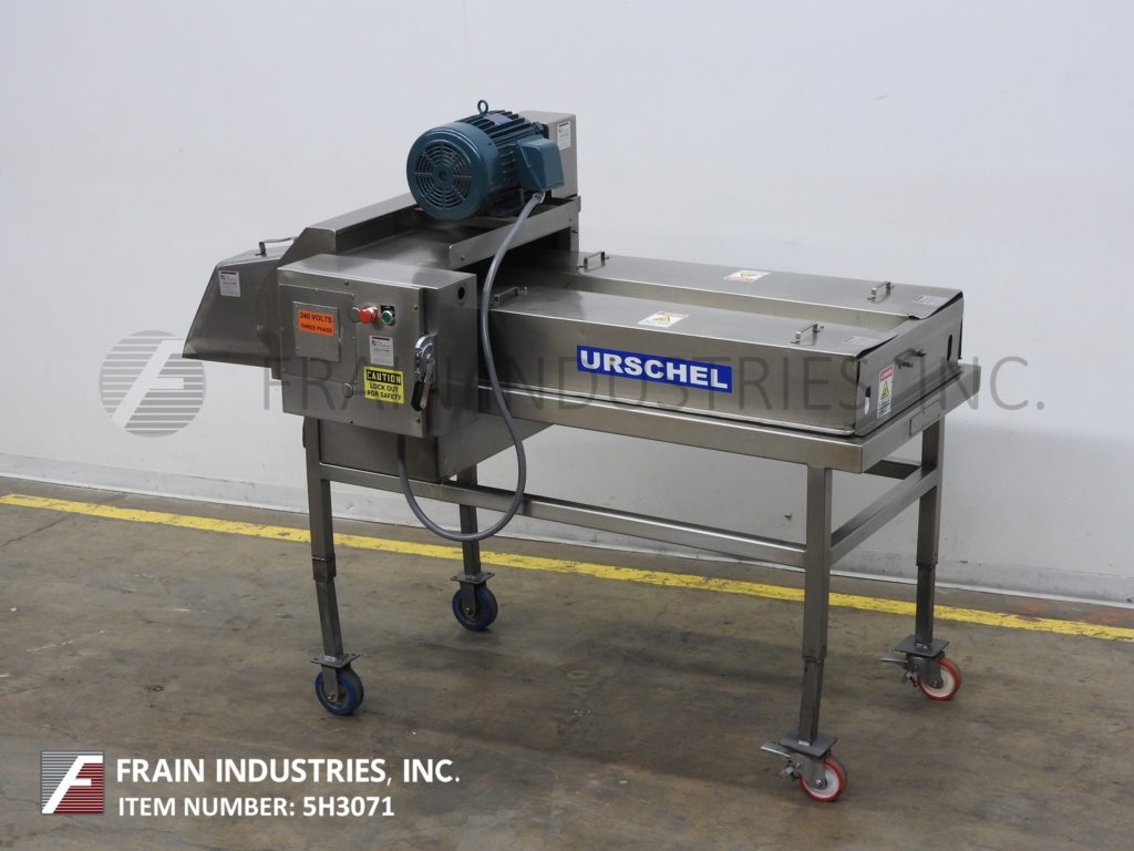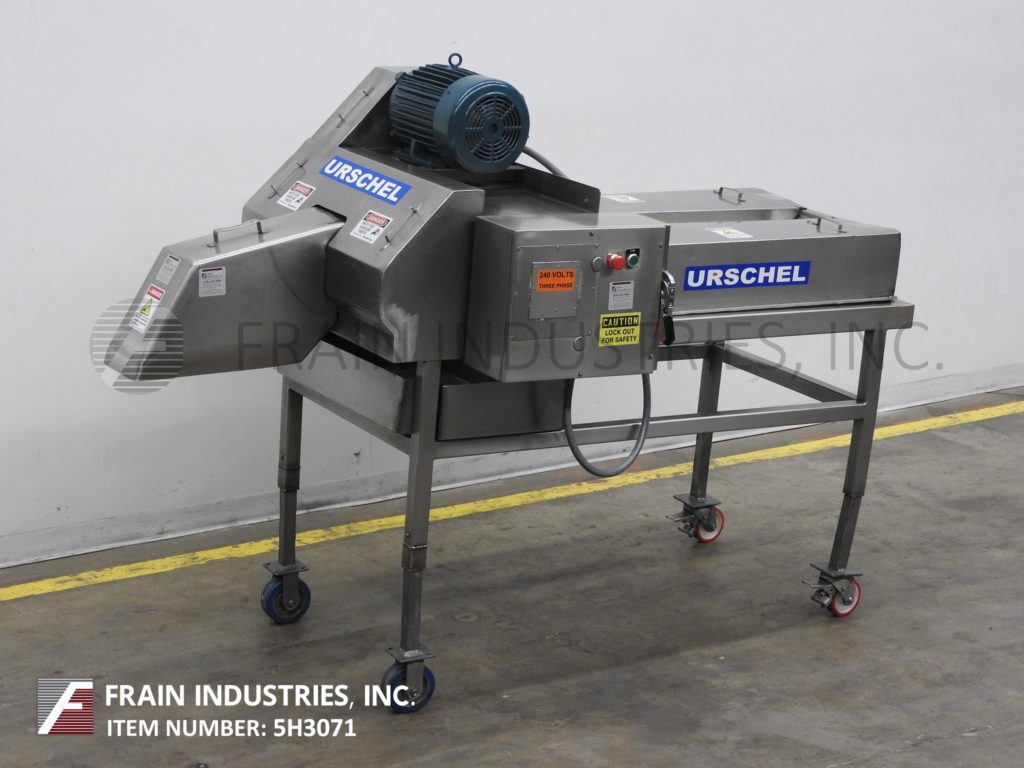 返回所有设备Urschel型号J-A S/S,带式不锈钢切块机和带钢切割机,用于各种产品,每小时的体积取决于材料和应用。产品厚度:高达1/2",圆刀切割:3/16"至3",横切刀切割:1/4"至3" 6"直径给料辊。菠菜、青椒、柑橘皮、芹菜、椰菜、欧芹、冷冻鸡胸肉、牛肉干、油炸面包丁、皮塔饼、面饼和巧克力饼等切块或切片。单元安装在底座框架上,带有(4)带脚轮的不锈钢腿。