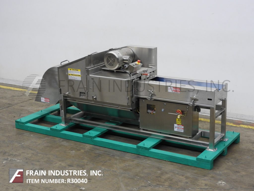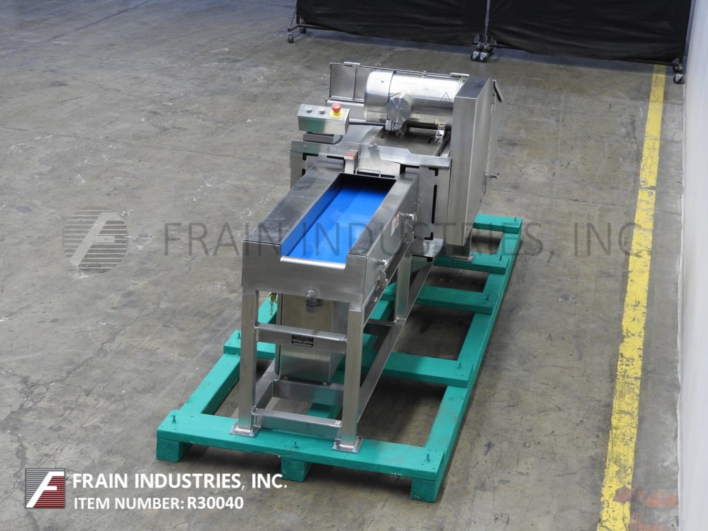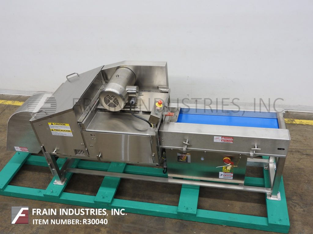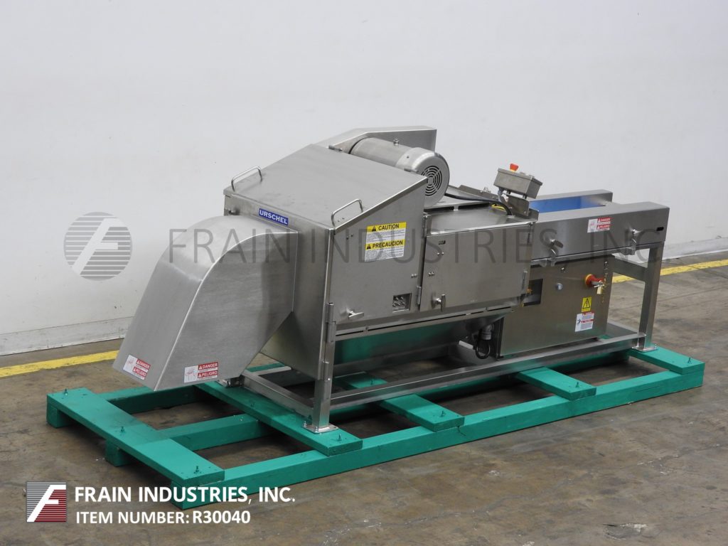 返回所有设备Urschel M型,不锈钢,带饲料,切丁机,碎纸机和条形切割机设计的肉制品,能够从500到4500磅每小时的生产速度-取决于材料和应用。能够从3/16“到3”的条形切割和从1/8“到4”的横切。在馈送带上配备32“x 9”负载区域和可调节的馈送辊,允许在3/8“到1”的所有厚度上积极的产品馈送。安装在带有脚轮的不锈钢框架上。改变零件需要适应配置和尺寸范围的变化。