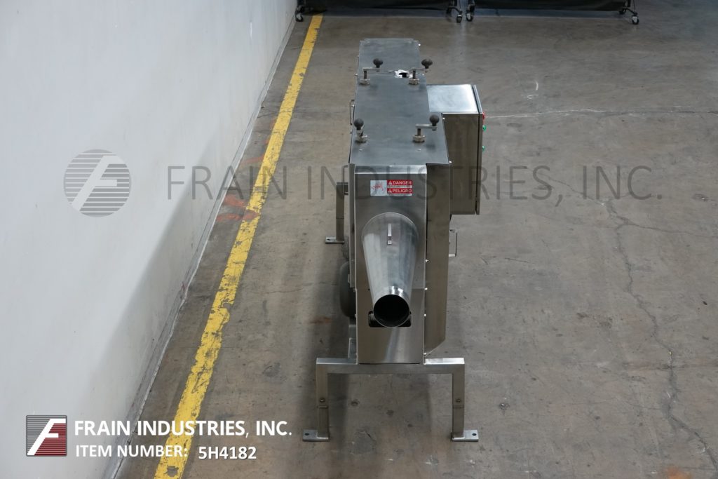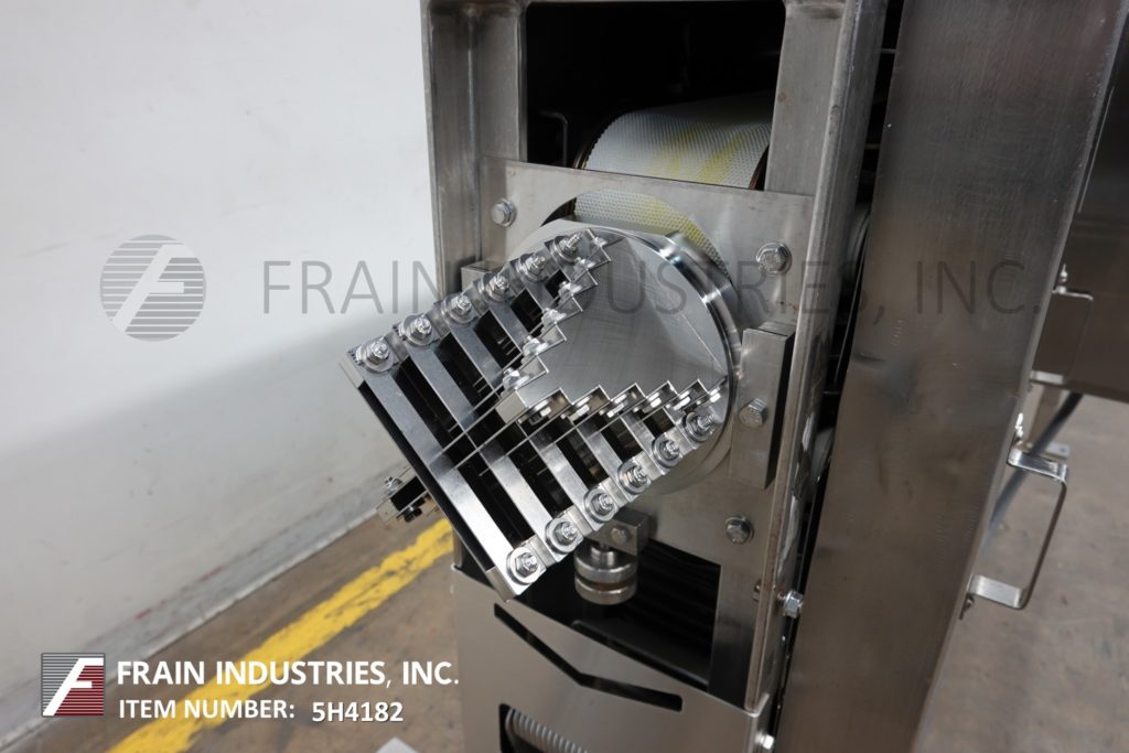 返回所有设备Urschel,Model VSC,均匀段,板坯和条带切割的自动切片机,每小时磅产品 - 取决于材料,应用,机器配置和切割。接受直径高达4“的产品。配备5英寸宽顶部和底部产品输送带,配有5英寸的直径产品切割/放电口。段切种类型:3,4,5,6,7,8,10或12。矩形条:7.1mm x 10.3mm至8.7mm x 11.9mm。方形条:4.0mm x 7.5mm至14.2mm x 25mm。安装在不锈钢基架上,与互锁安全门安装在不锈钢基础框架上。