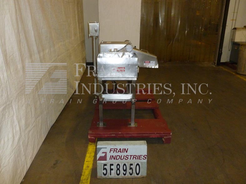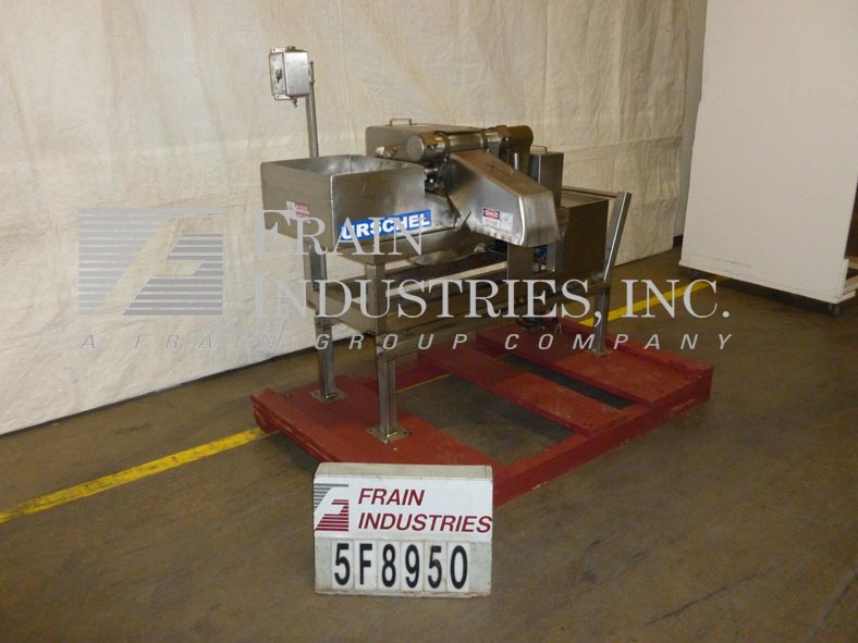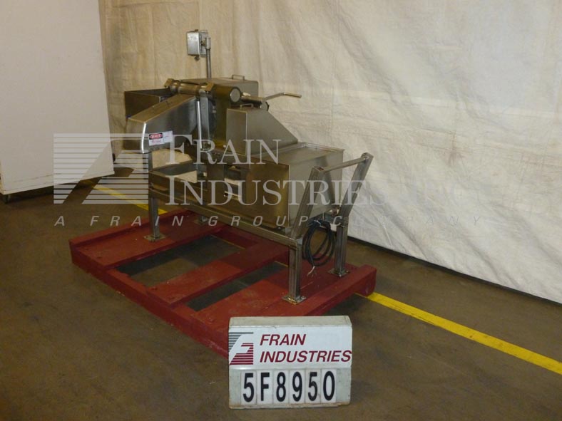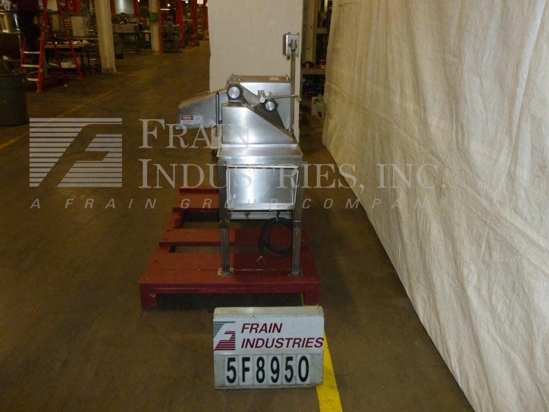 返回所有设备Urschel型号G,不锈钢迪切尔 /切片机 /切割机,用于每小时量的各种食品,具体取决于材料和应用。利用范围:1/8“至5/8”切片厚度,9/32“至3” Crosscut,1/8“至3”圆形的切片,横切和圆形刀片。在任何尺寸上的连续运动和接受最多5-1 /2“的产品。产品都可以通过旋转的叶轮喂入叶片中。配备了不锈钢进料料斗,排放槽,带有升降机安全保护启动 /升降机。停止按钮控件并安装在不锈钢底座上。尺寸更改所需的更改零件。当前使用3/8“工具设置。