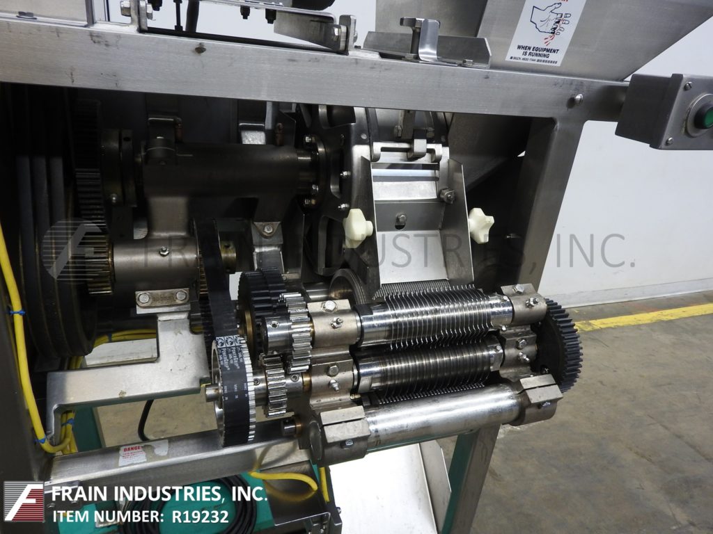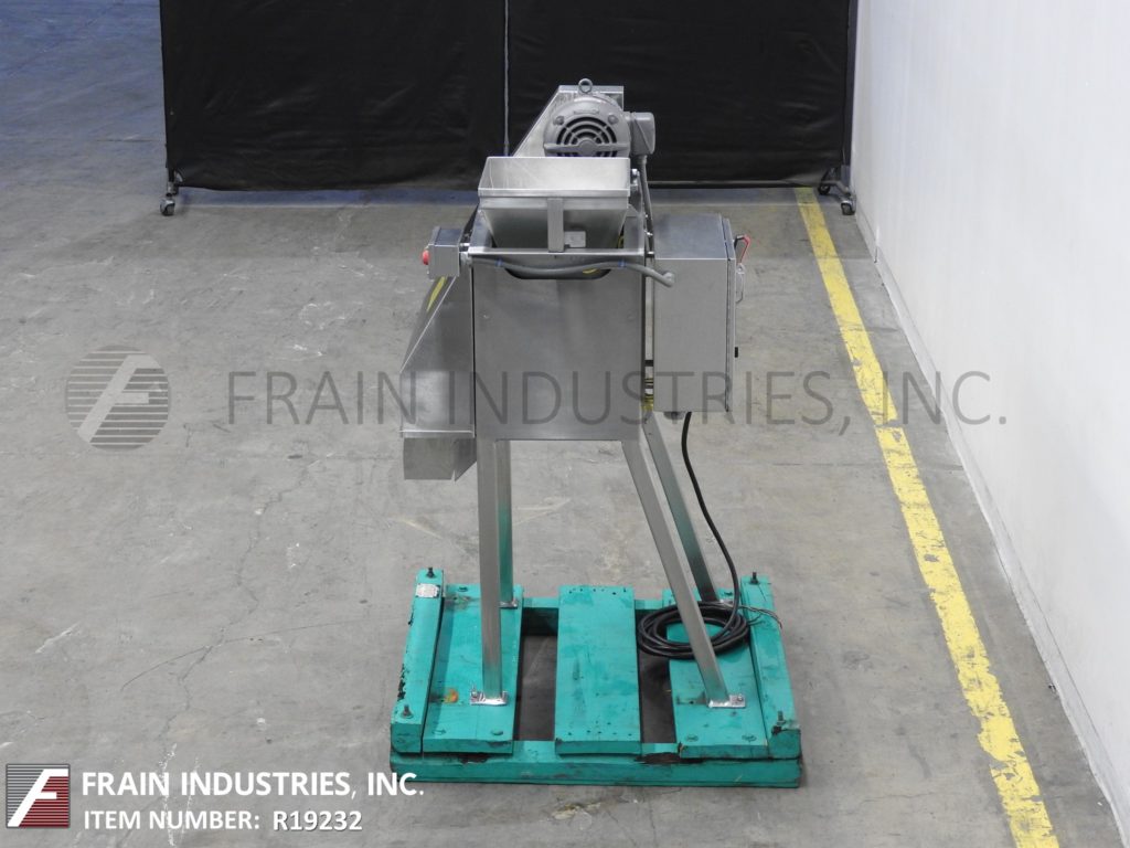 返回所有设备Urschel模型RAA,美国农业部批准的切片速度取决于使用的产品类型。该装置能够在高速下切片8000磅/小时的菠萝,在高速中速下切片5000磅/小时的澳洲坚果。单位将切割小到1/16“X 1/8”X 1/16“和大到3/8”X 1/2“X 3/4”。为了切割不同尺寸的零件,需要更换零件。能够减少生、熟或回火冷冻beef1/8, 5/32, 3/16, 1/4、5/16或3/8“(3.2,4.0,4.8,6.4,7.9,和9.5毫米)数据集和,和作品,如1/8 x 3/8 3/8“(3.2 x 9.5 x 9.5毫米)或1/4 x 1/4 1/2“(6.4 x 6.4 x 13毫米)。