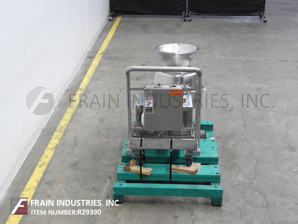 回到所有设备Urschel Model CCD,不锈钢,切片机,条带切割机,碎纸机和皱纹切割器用于各种不同的食品,具有每小时数量的生产率 - 取决于材料,应用和机器配置。平面片:0.8mm至12.7mm,标准皱纹:3-1 / 3至5.7波线每英寸深度皱褶:2.0mm至2.1mm,厚度:0.040mm至.285mm,V-slics 4.7至8波/ 8个波线深度褶皱:(4.7)2.1mm,厚度:1.0mm至2.5mm。深度皱纹(8)1.3mm,厚度:1.0mm至2.5mm。还有椭圆形,折扣碎片和条带切割(所有具有适当的变换部件)。配备离子型切片机,采用旋转叶轮迫使产品施加到侧壁上,通过(8)个单独的可变切割头,使处理器能够在分钟内改变切割的类型,更换廉价,专门设计抛弃刀具。在任何尺寸中接受高达3-1 / 2“的产品。不锈钢饲料料斗,放电滑槽和起始/停止按钮控制。安装在推车上用脚轮