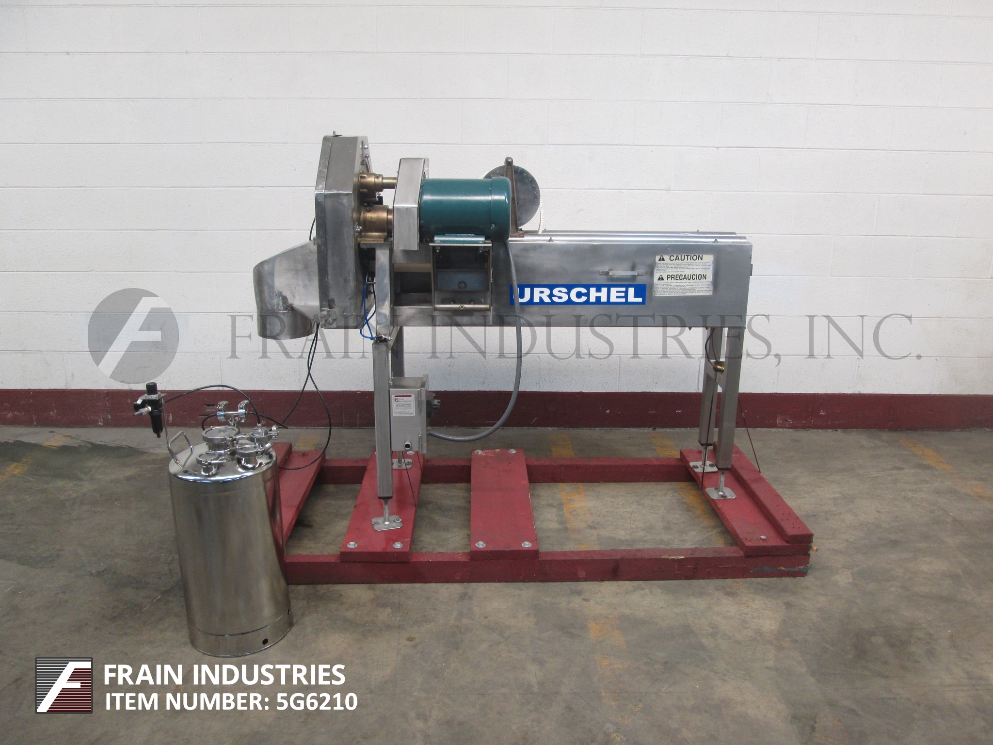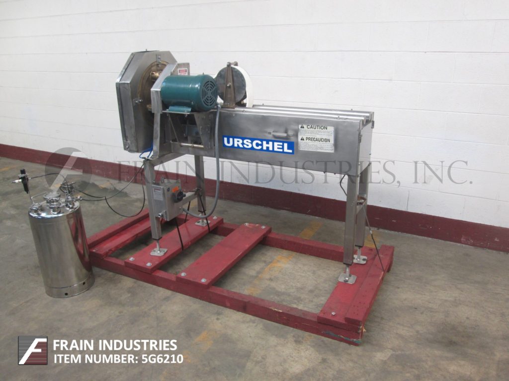 返回所有设备Urschel,型号OV,自动USDA切片机,用于均匀的横切切片细长食品。将以直径为2英寸“的产品。将生产扁平切片,从1/16”到1¼“厚。能够平坦或皱纹切片。改变适应尺寸/切割范围所需的部件。配备50英寸长的腰带进给,2½“宽产品按住皮带和8”直径放电,25“接地间隙。